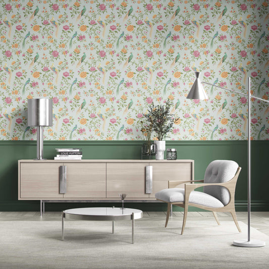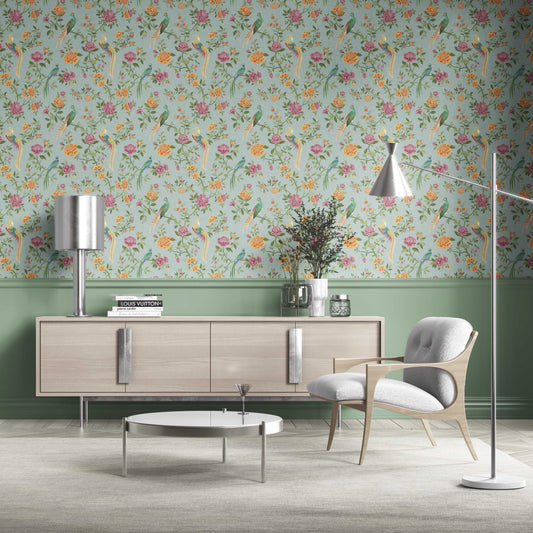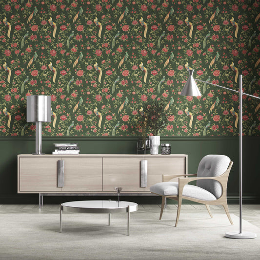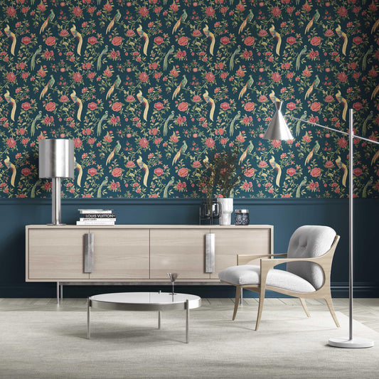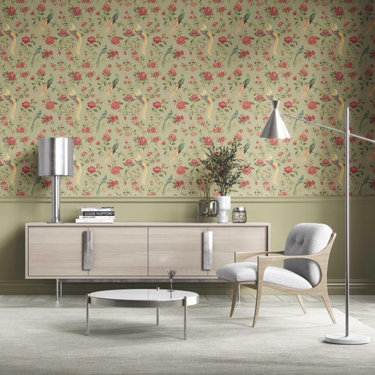 Rooted in centuries of art and storytelling, toile and chinoiserie wallpapers do far more than dress a room—they lend it narrative, character and quiet drama. With such pictorial backdrops in play—countryscapes dotted with passerines, lovers lost in each other’s gaze, mystical pagodas rising to the skies—how can a room ever feel dull or understyled! The scenes rouse interest, stir imagination, and pay homage to heritage artistry. If you’re also looking to wrap your walls with such depth, intrigue, and storied charm, follow us as we tour through our collection, exploring how chinoiserie and toile wallpaper can shape a room.