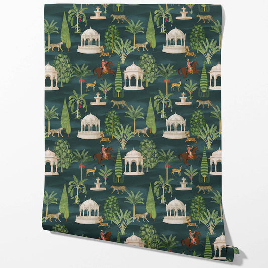 Studies, Offices and Reading Nooks: In libraries and home offices, toile’s classical scenes and chinoiserie’s imagined horizons go hand in hand with the rows of books and well-worn desks, encouraging focus while stirring imagination. Here, wallpapers like Chaak feel apt, whose portrayal of peasants interacting in rural settings against ancient ruins and the Montgolfier hot air balloon sets a backdrop steeped in story. Its captivating collation of landmark events and everyday joys becomes food for thought, complementing the quiet, contemplative nature of these spaces.