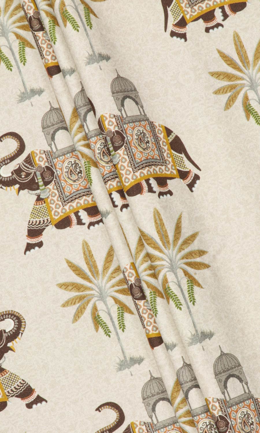 - Its oriental motifs of howdah-geared elephants and bountiful plantain trees