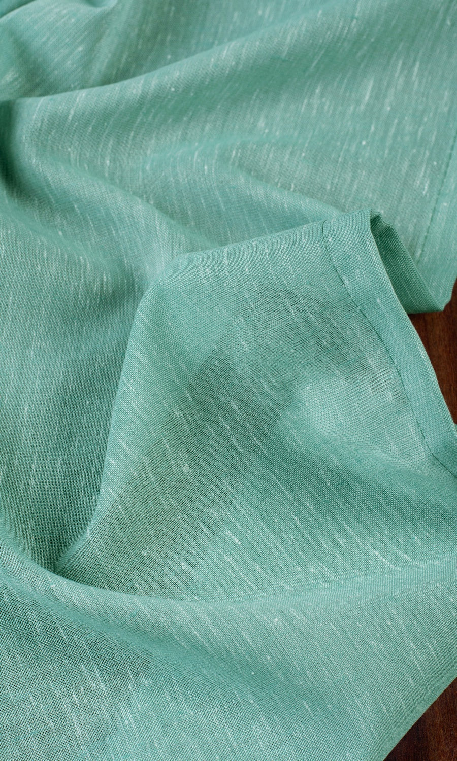 'Aloof' brings in a breath of fresh (sea) air — relaxed, coastal, and quietly cool. With its refreshing green-blue hue and beautifully imperfect weave, this sheer fabric is made for slow mornings, light-soaked rooms, and homes that like their style laid-back but thoughtful. It's perfect for settings celebrating beach house minimalism or a city home that dreams in shades of the sea.