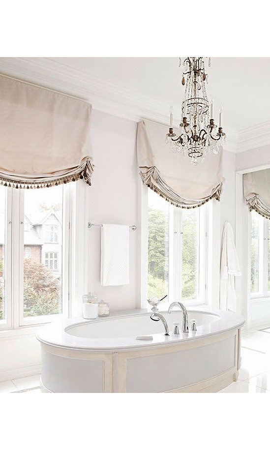 Tassel trims are handstitched on the bottom hem of roman shades for a sumptuous effect.