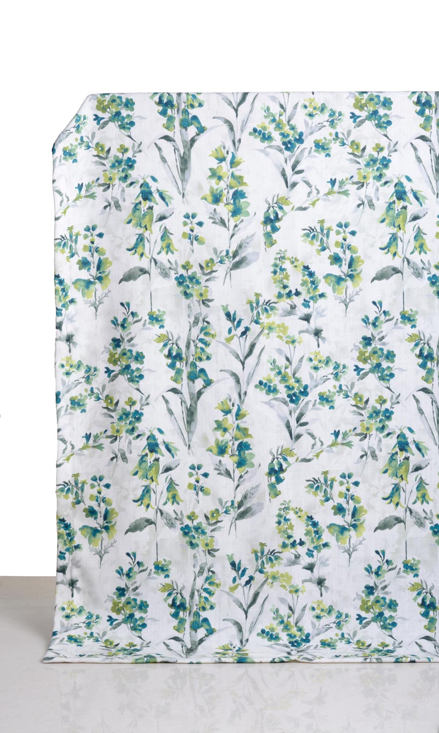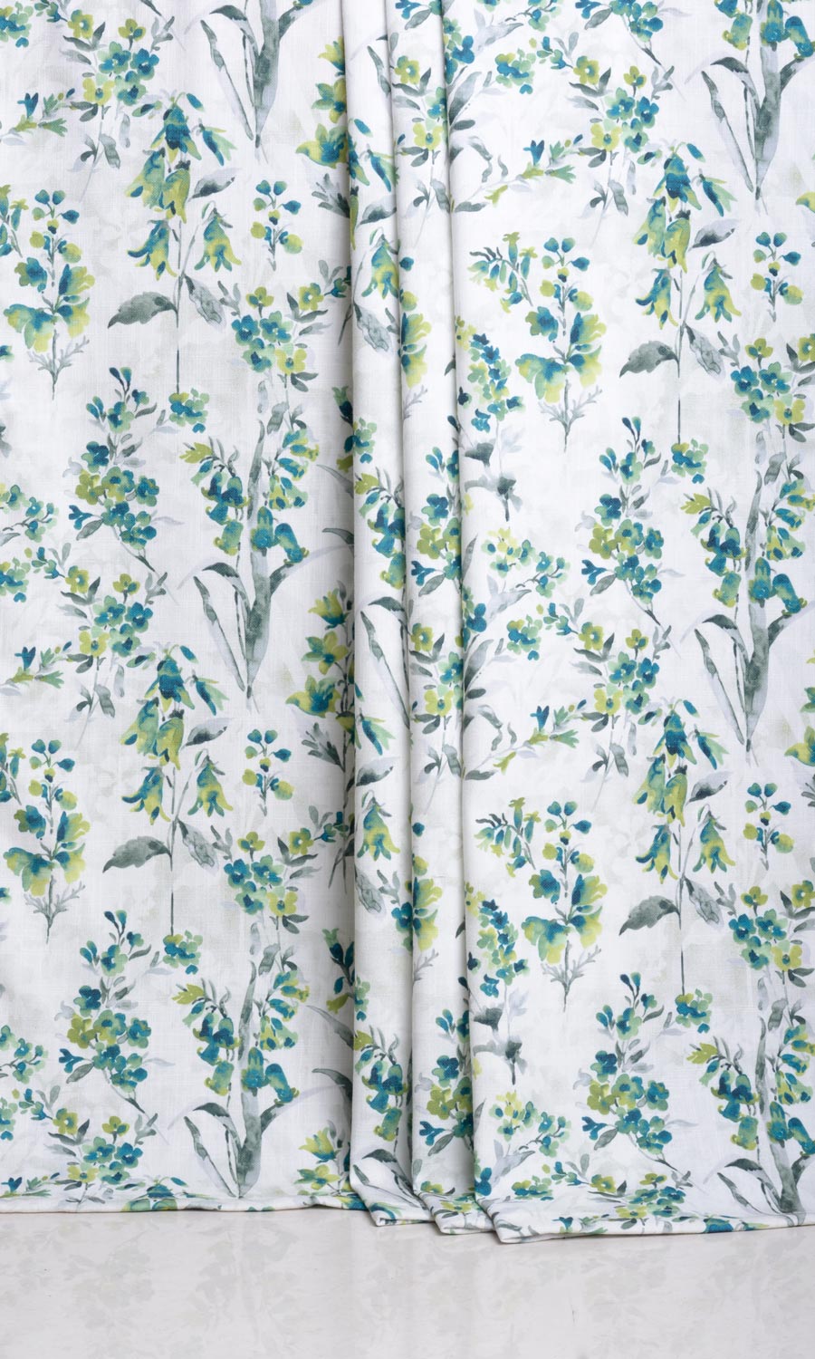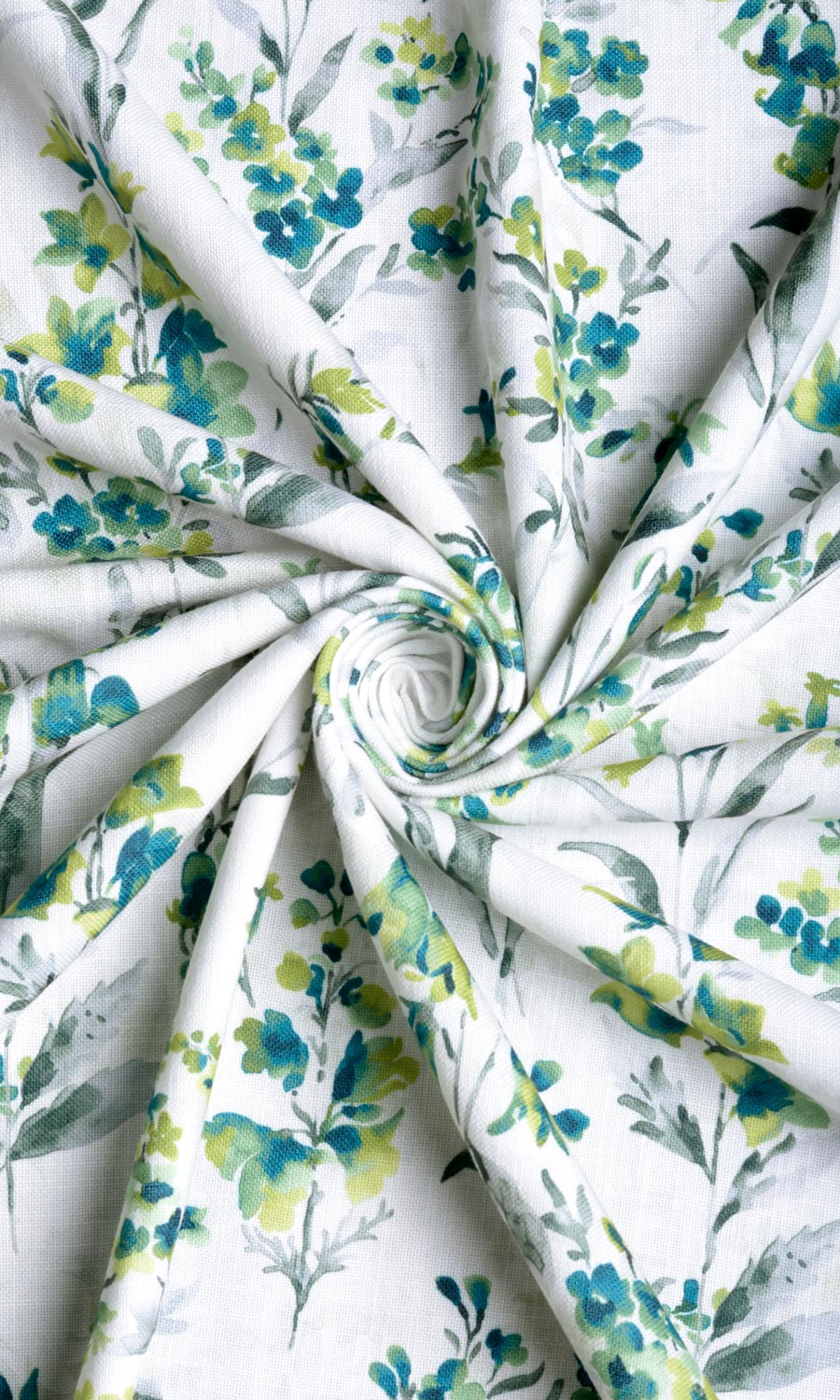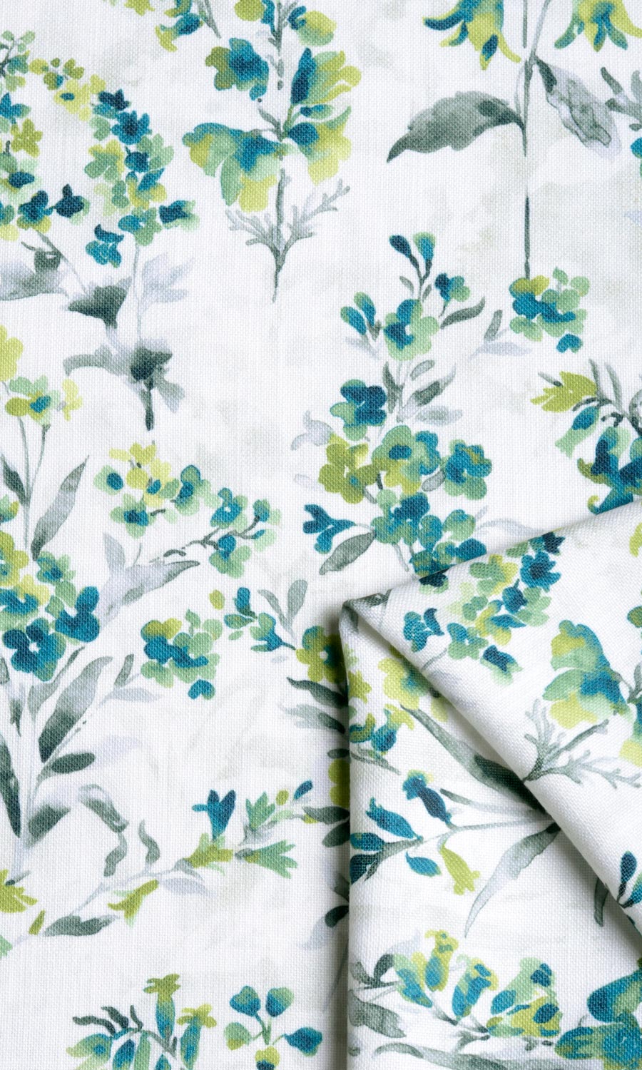 'Aqua Electra' in blue-green captures the joyful flourish of wildflowers swaying under open skies. Its lively palette blends verdant greens with refreshing blues, evoking the cheer of springtime meadows kissed by sunlight. Airy and bright, this floral fabric is ideal for brightening up a kitchen window, adding whimsy to a casual lounge, or bringing a gentle charm to a child's room. Wherever it goes, it lends a sense of cheer that makes people steal second glances with a glad smile.
