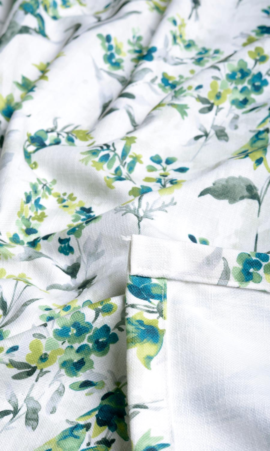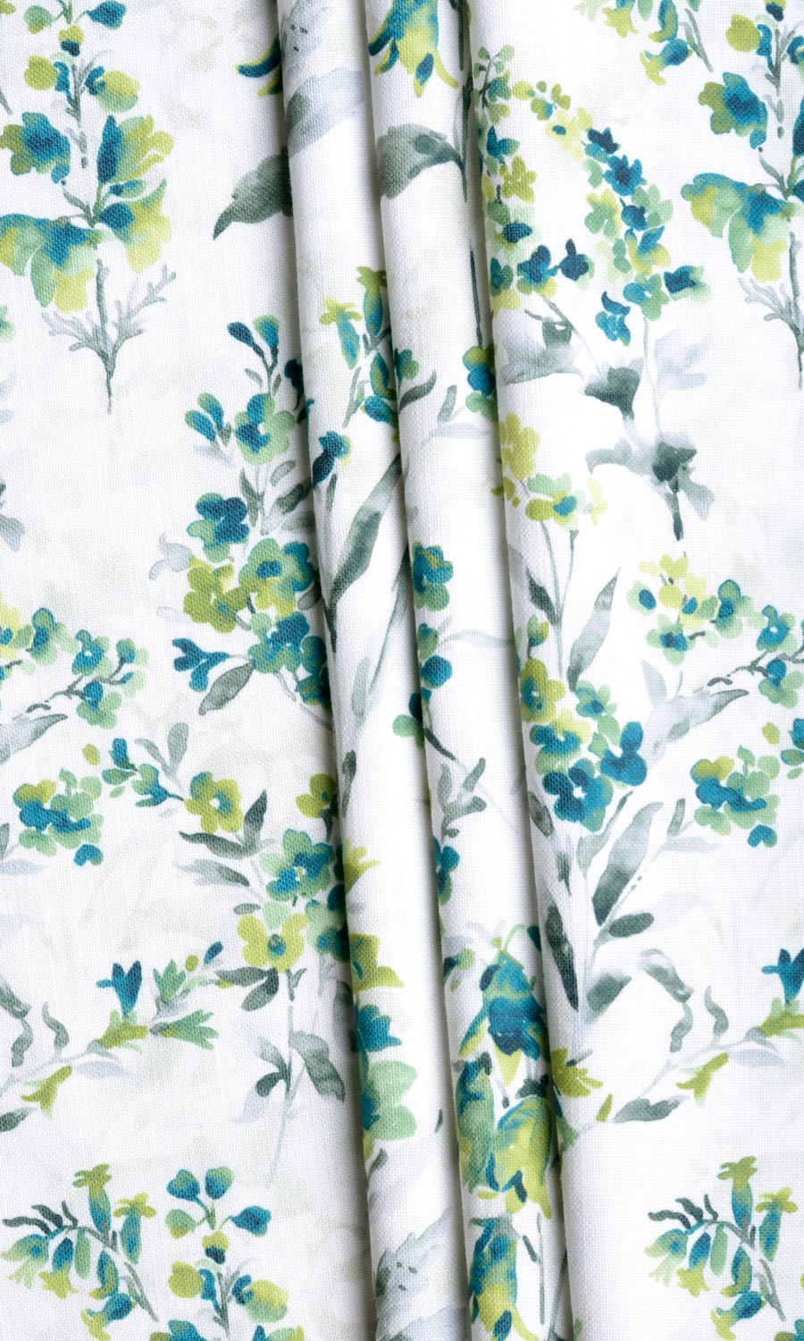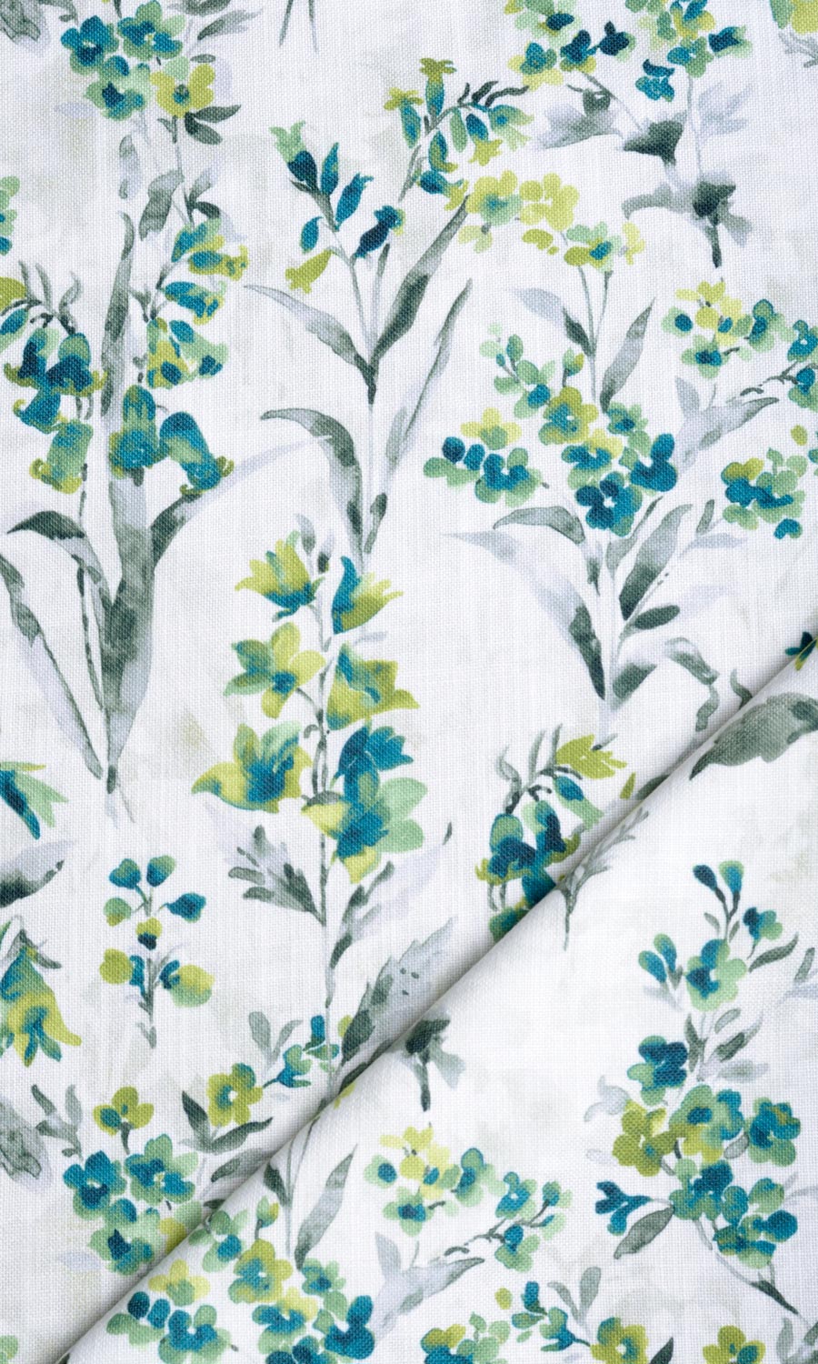 'Aqua Electra' in blue-green captures the joyful flourish of wildflowers swaying under open skies. Its lively palette blends verdant greens with refreshing blues, evoking the cheer of springtime meadows kissed by sunlight. Airy and bright, this floral fabric is ideal for brightening up a kitchen window, adding whimsy to a casual lounge, or bringing a gentle charm to a child's room. Wherever it goes, it lends a sense of cheer that makes people steal second glances with a glad smile.