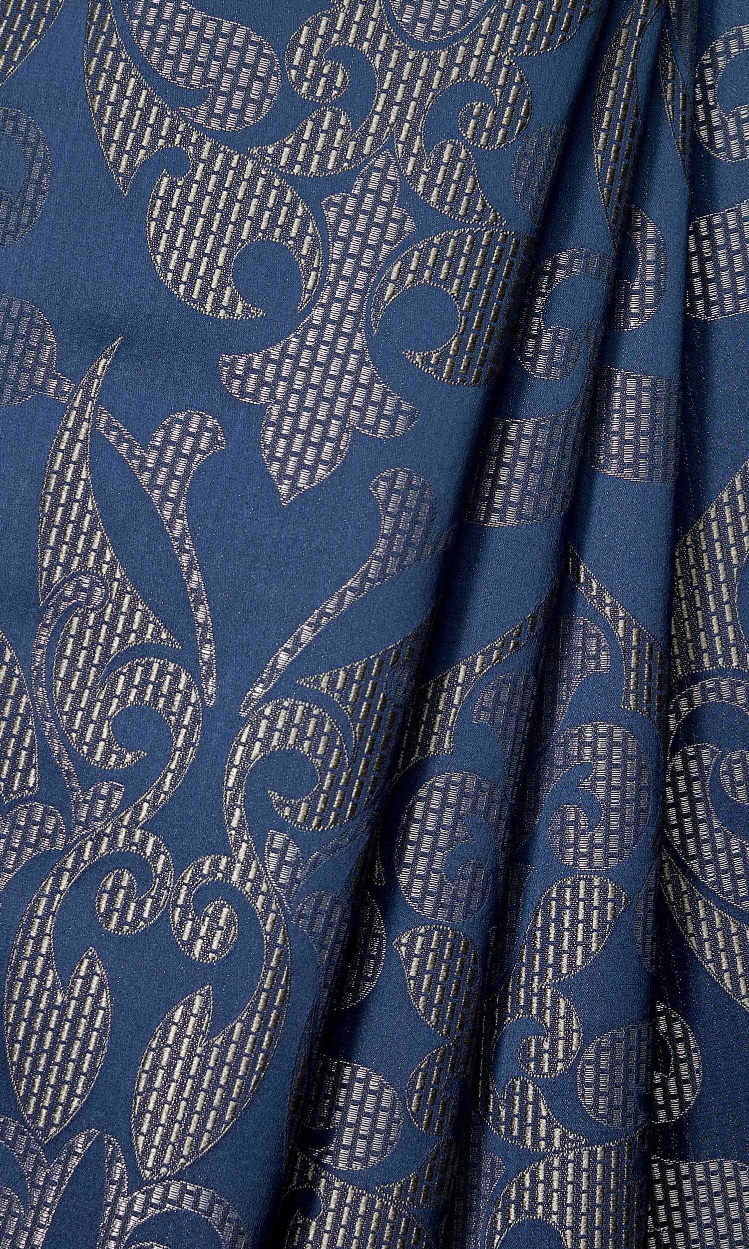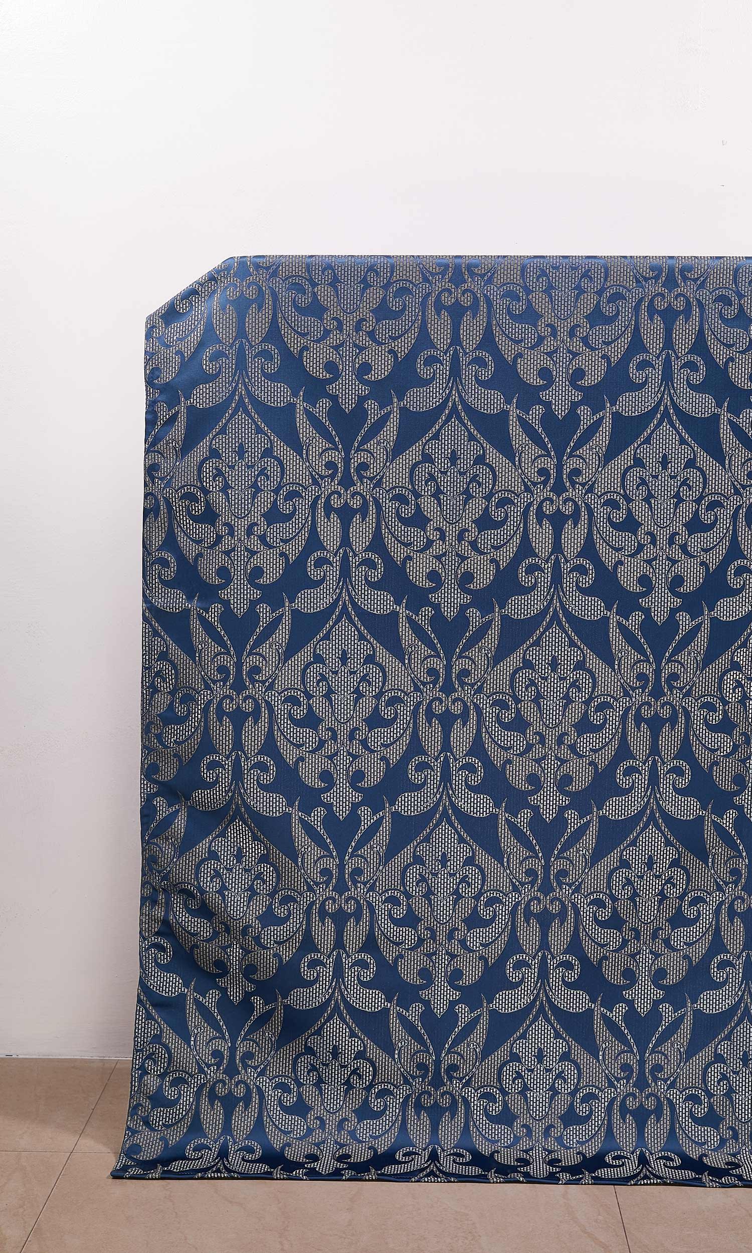 Like a silver tapestry glistening under the moonlight, set against a deep navy backdrop, 'Atlantica' makes a statement with both its palette and pattern. Use as a backdrop to traditional/ transitional dining rooms featuring statement chandeliers, shining silverware, and antique porcelain figurines.