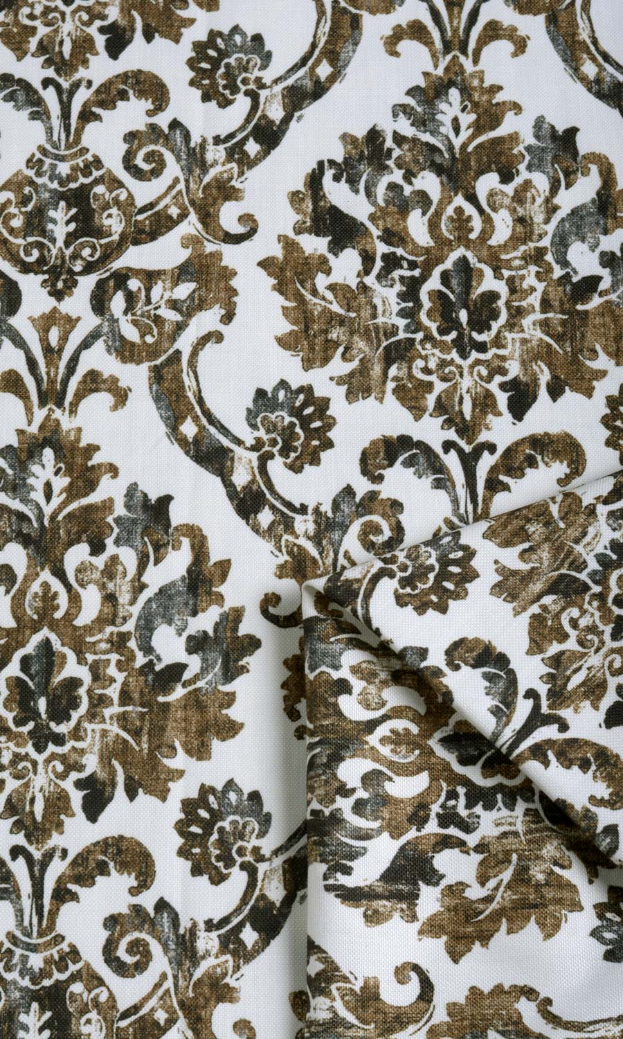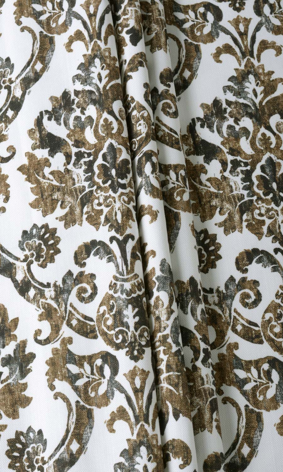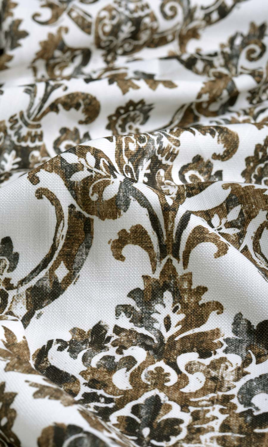 'Autumn Twig' is an oversized damask print fabric where time-honored design meets modern flair. The expansive damask pattern retains its classic charm while the neutral brown, grey and white colour scheme adds an up-to-date edge. It can be the finishing touch of an eclectic living room, a special feature of a boho bedroom or the fitting adornment of a grand door owing to its scale.