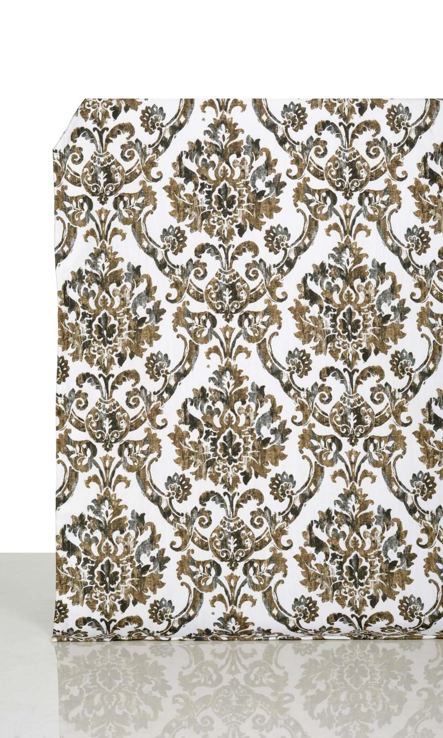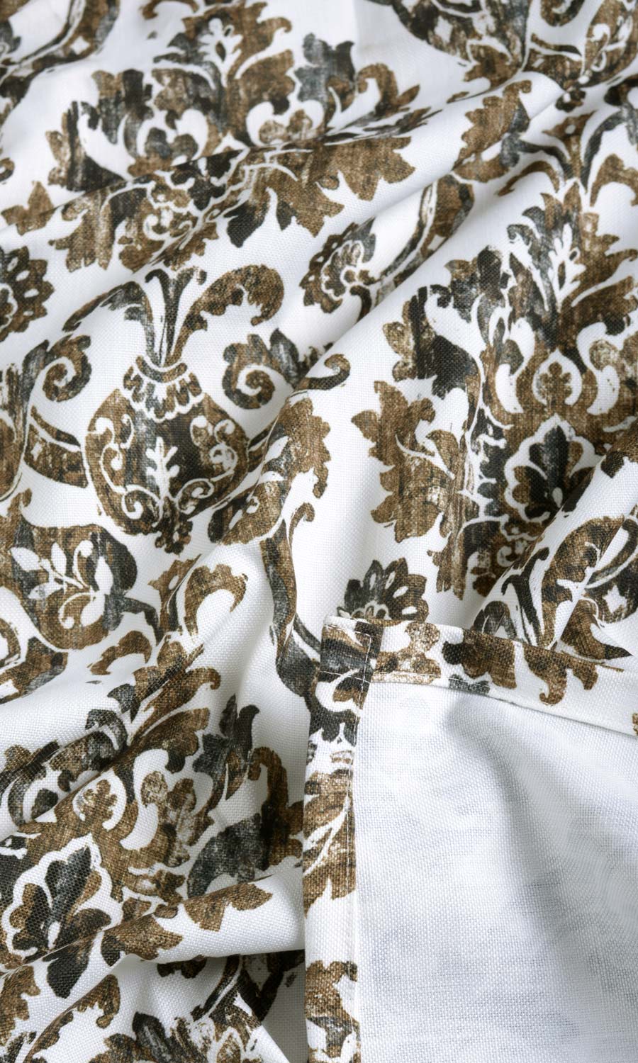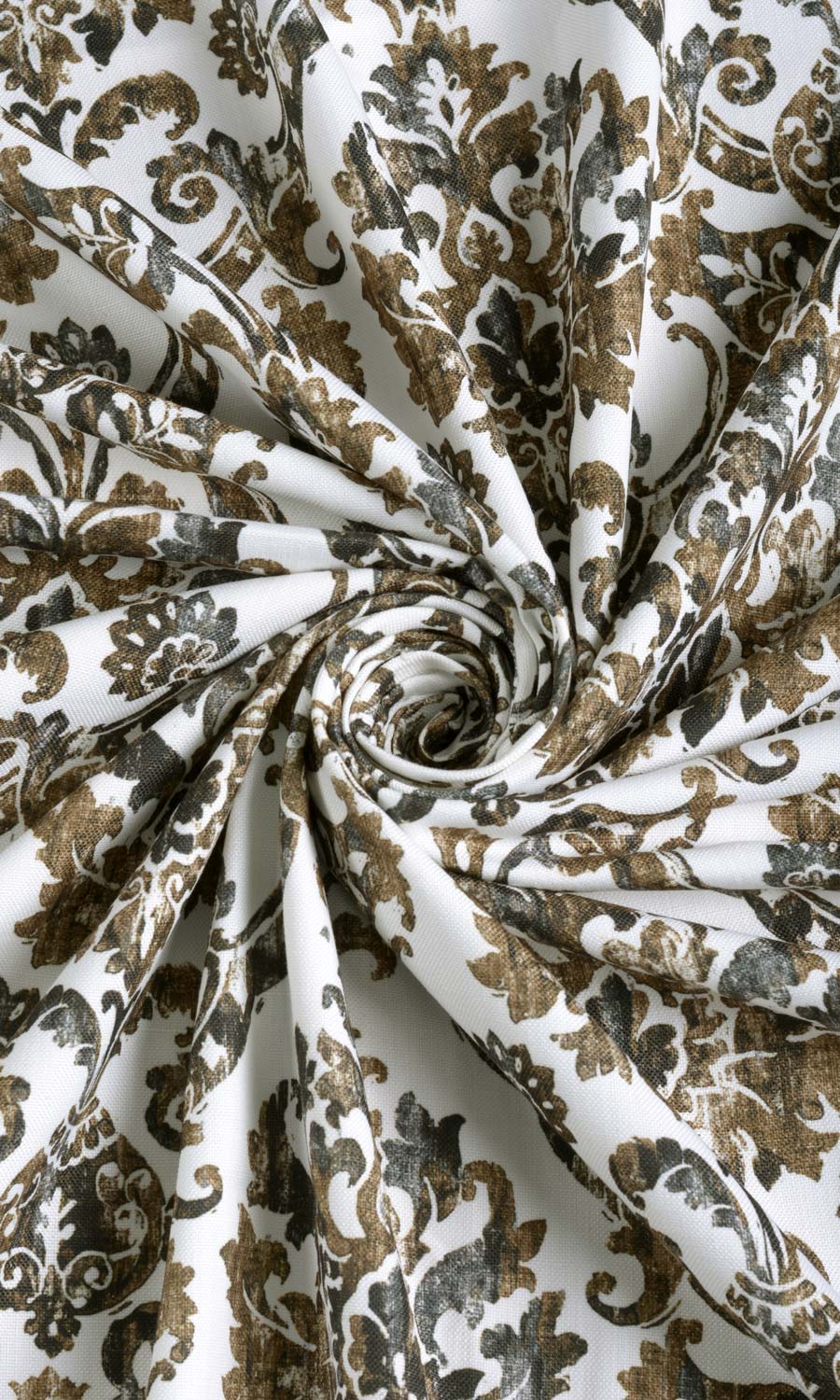 'Autumn Twig' is an oversized damask print fabric where time-honored design meets modern flair. The expansive damask pattern retains its classic charm while the neutral brown, grey and white colour scheme adds an up-to-date edge. It can be the finishing touch of an eclectic living room, a special feature of a boho bedroom or the fitting adornment of a grand door owing to its scale.