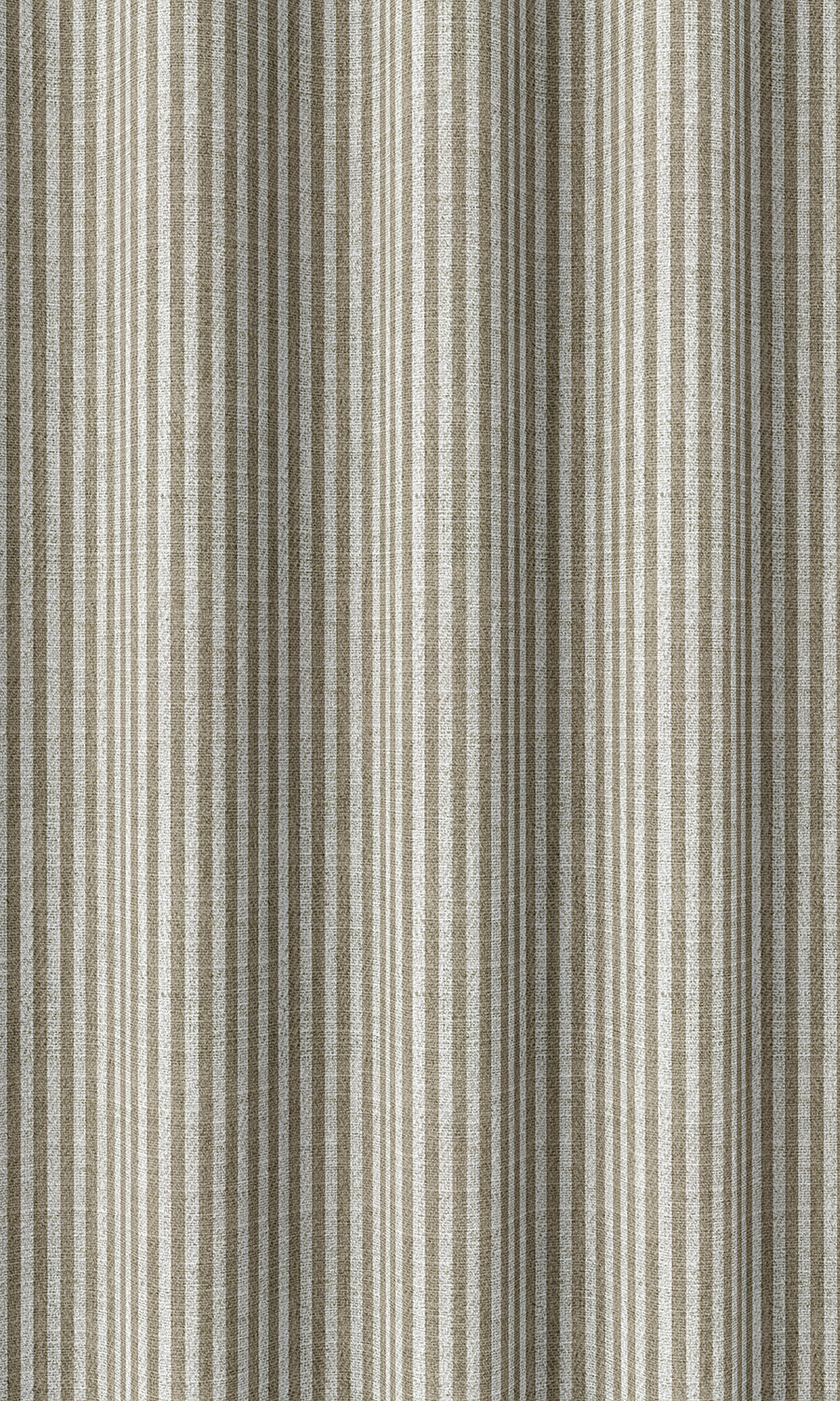 Featuring fine, evenly spaced stripes in a brown-white palette with a textured finish, 'Banos' brings an easygoing, timeworn feel to any space. Its understated pattern blends effortlessly into rustic settings with wooden trestle tables and stone floors or settles into modern spaces alongside slatted walls and simple, clean-lined furniture. A classic fabric with a down-to-earth charm!