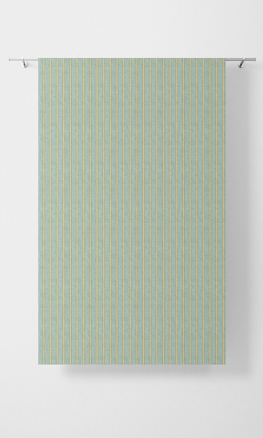 'Blade Seashore' captures the essence of relaxed coastal living. The green ticking stripes, set against a calm aqua blue backdrop, create a gentle rhythm that calms and refreshes. It's a subtle yet uplifting design — perfect for adding a quiet, organic touch to spaces. Whether you're styling a coastal retreat or enhancing a modern home, this fabric brings a natural, breezy elegance that enhances any room without overwhelming it.