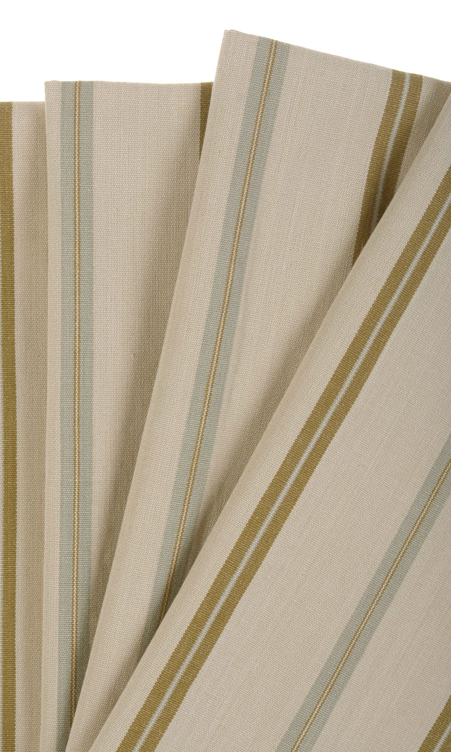 Not with the allure of loud colour or opulent lustre but with the quiet charm of natural colours and organic texture, 'Blanched Almond' depicts the power of simplicity. This country-style striped fabric offers a simple pattern of double stripes in a subdued palette of beige, brown and warm grey that can round off a rustic home's bucolic themes. Pair with leather, burlap and jute accessories to carry forward the theme of natural materials and muted hues.