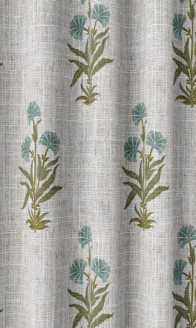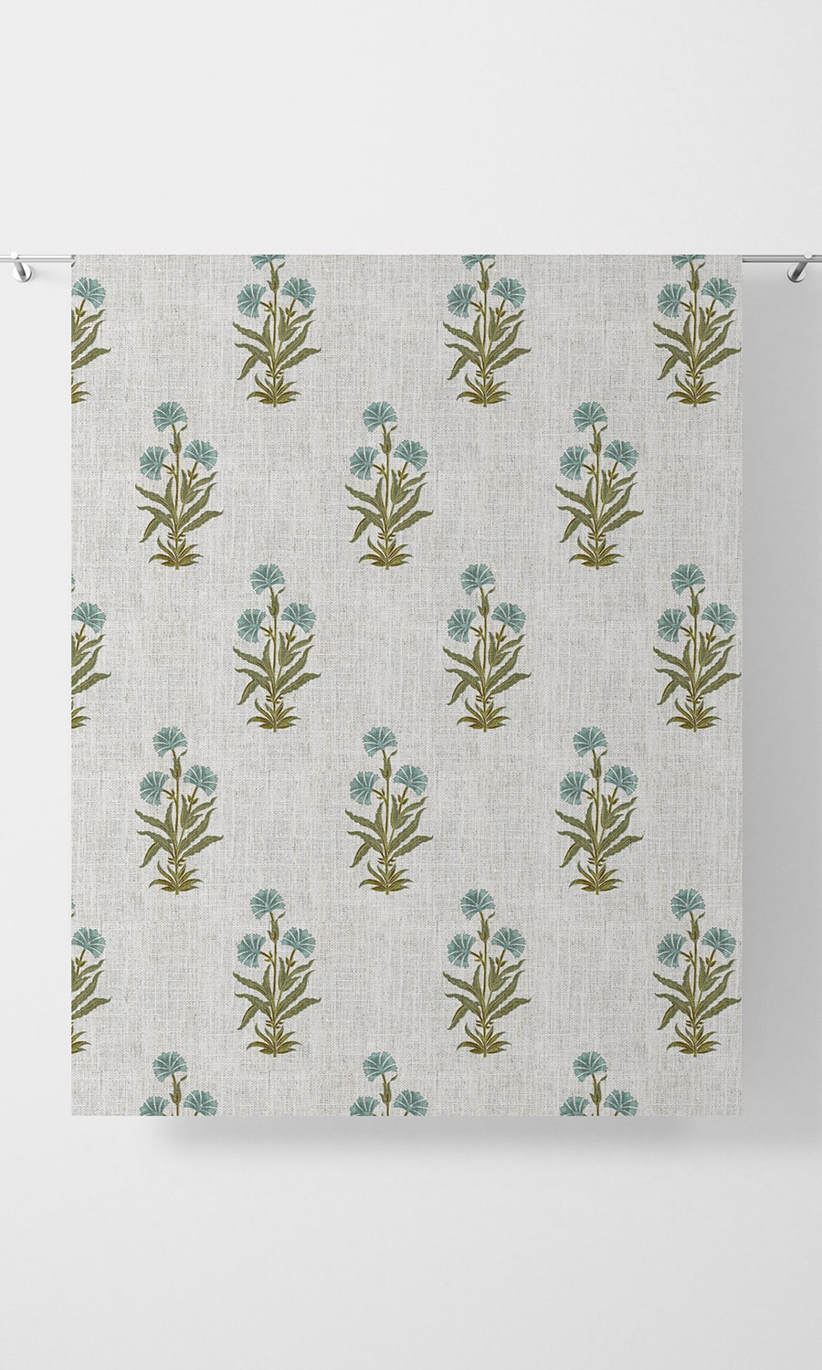 Trading the vibrant red and white palette for an understated grey and blue combination, 'Bluebird Song' recaptures the iconic Indian poppy motif with updated aesthetic sensibilities for a modern home. Its uncluttered layout and largely neutral palette make this floral fabric a great choice for modern homes that prefer minimal details and embellishments. Add it to a blue-themed room where the grey can offset the energy of the bright hue and echo its accent tones.
