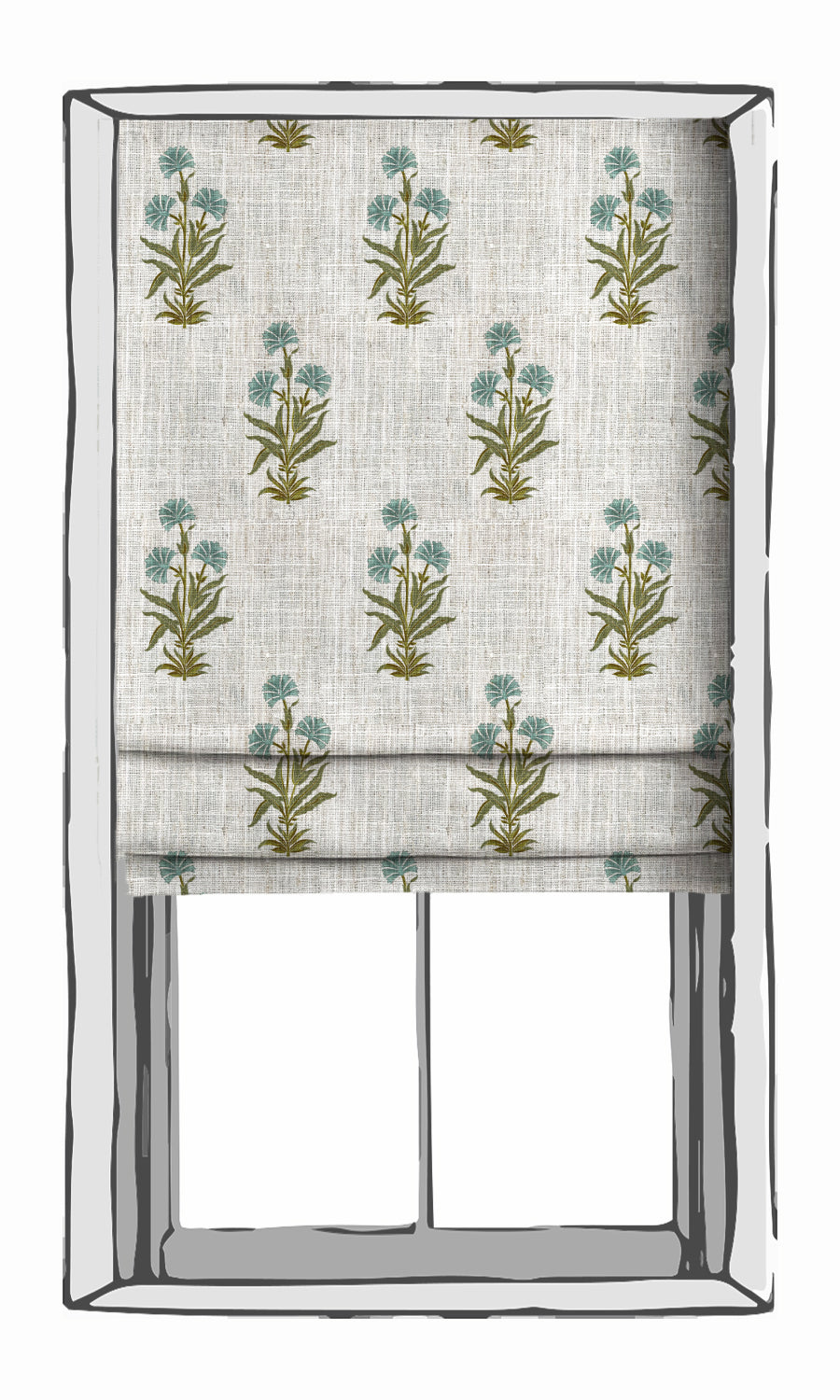 -Pick the back-slatted flat fold style: Pick the back-slatted fold style to present the pattern of 'Bluebird Song' in the best light. The quiet, uninterrupted frontage of back-slatted roman blinds, free of slat lines and visual breaks of any kind, offers a flowy surface on which the patterns can shine with integrity, free of visual distortion.