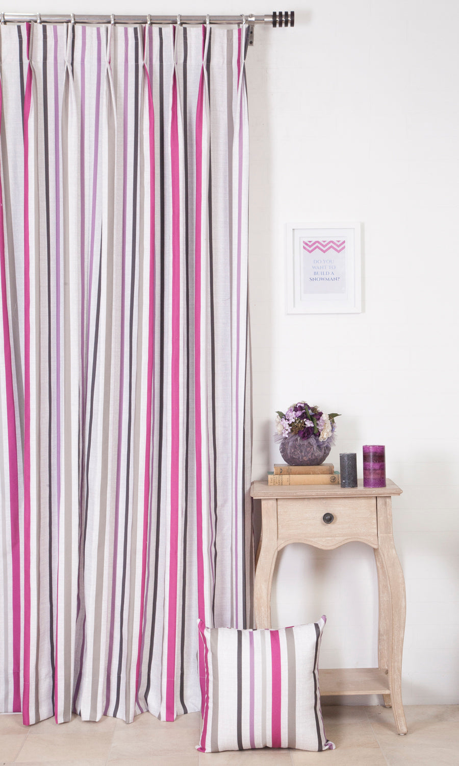 Marrying a never-out-of-style pattern with a sparkly summer vibe, 'Blush Ribbon' adds oomph with a modern flair. Its vertical stripes bearing a neutral mix of greys, whites and taupes, spiced by cheery bright pinks, bring the right bit of detail to the room while relaying an unfussy aesthetic of clean lines. And the shots of vibrant magenta do an incredible job of infusing the space with liveliness and a spark of joy.