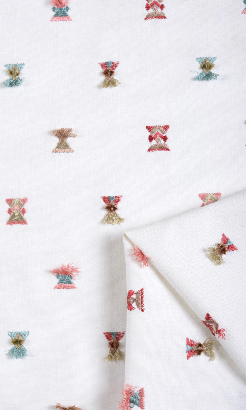 - Playful element of embroidered hourglass motifs randomly embedded with tassels