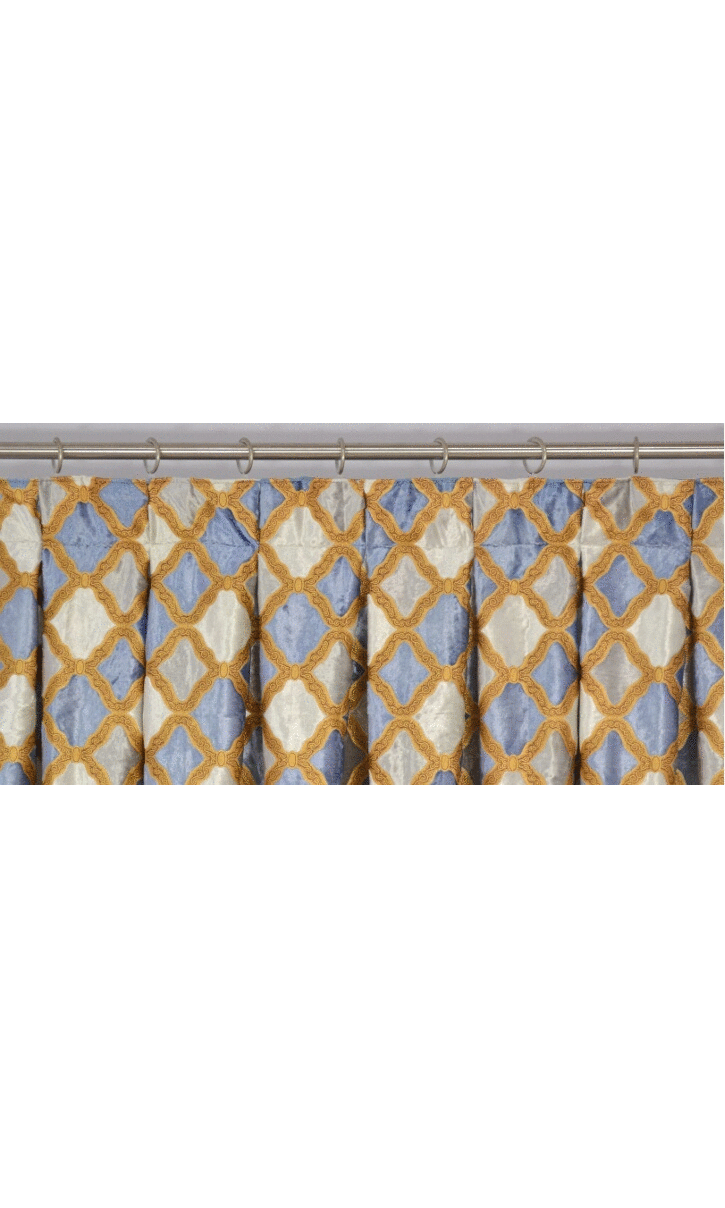 This particular style is stitched with inverted box pleat top and can be mounted on a pole or track (not included) with drapery hooks. It comes fully lined, and can be used standalone or as an over treatment to formalize a space.