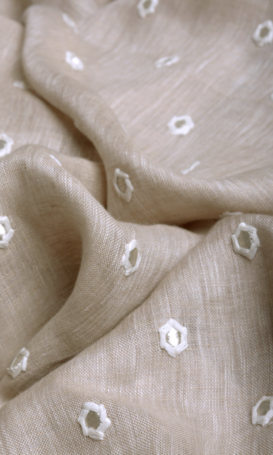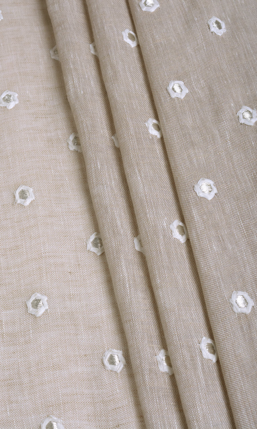 - The pure linen semi-sheer base that lends it a casual charm and hypoallergenic qualities