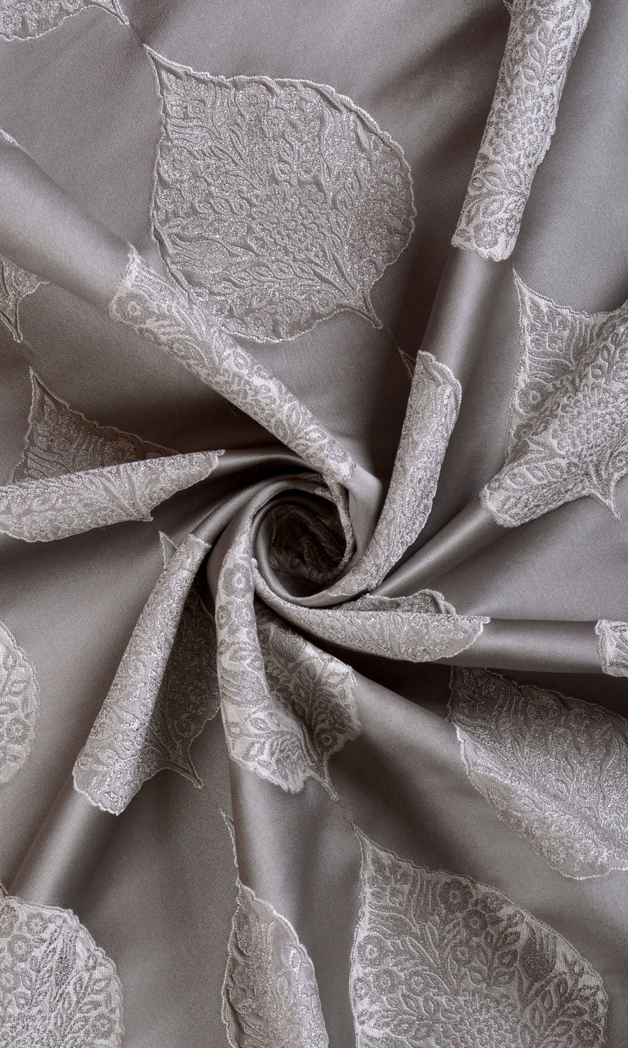 Floral ogee 'Bufftone' is a delicious blend of neutral colour and raised texture. Its classical and intricate foliate pattern, paired with a tone-on-tone grey palette - make it perfect for a traditional, transitional or eclectic home. The oversized motifs in a scattered layout and the serene colour scheme ensure this fabric can complement colour-heavy and pattern-ridden decor without visually overwhelming the room.