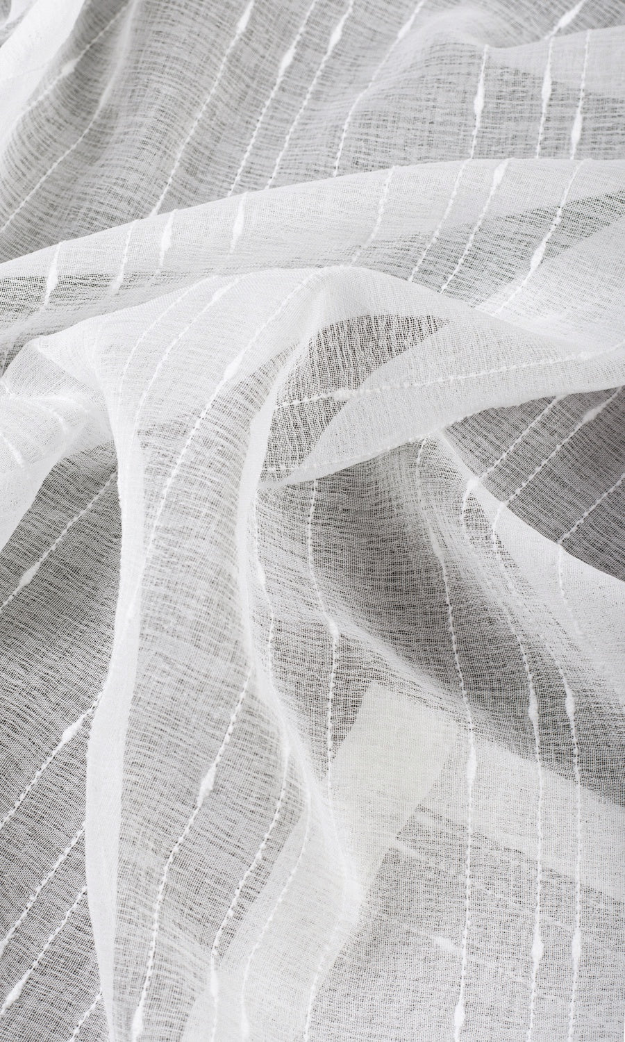 When you want a white sheer for its subdued elegance but also have an eye for detail that begs to be gratified, count on 'Calm Winter'. Its plain white offers visual softness while its dotted pinstripes punctuated with decorative ovals add an attractive component to arouse interest. Ensure privacy during the day while enjoying the diffused light and fresh air.