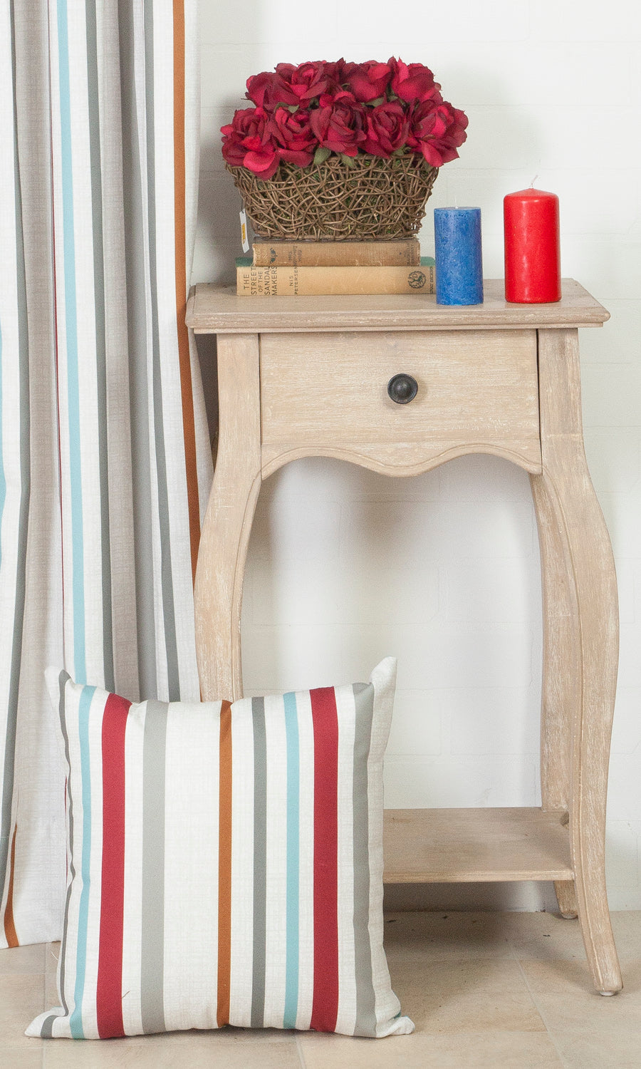 Marrying a never-out-of-style pattern with a sparkly summer vibe, 'Candy Coated' adds oomph with a modern flair. Its vertical stripes bearing a neutral mix of greys, blues and browns, spiced by a cheery deep pink, bring the right bit of detail to the room while relaying an unfussy aesthetic of clean lines. And the shots of vibrant red do an incredible job of infusing the space with liveliness and a spark of joy.