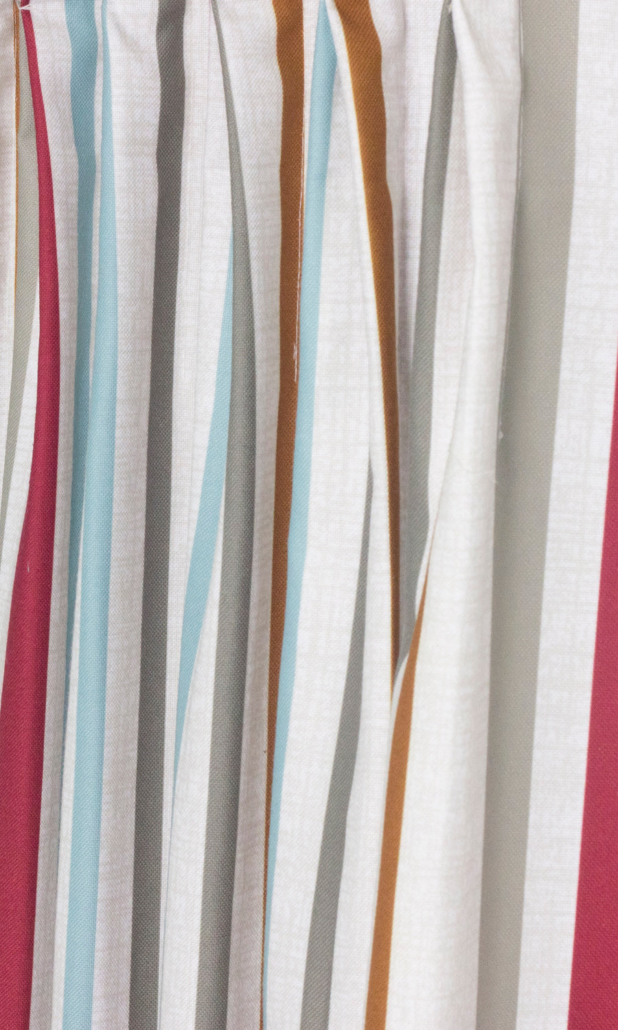 - Take advantage of vertical stripes: Since vertical stripes draw the eye upwards, roman shades in 'Candy Coated' can optically elongate the room.