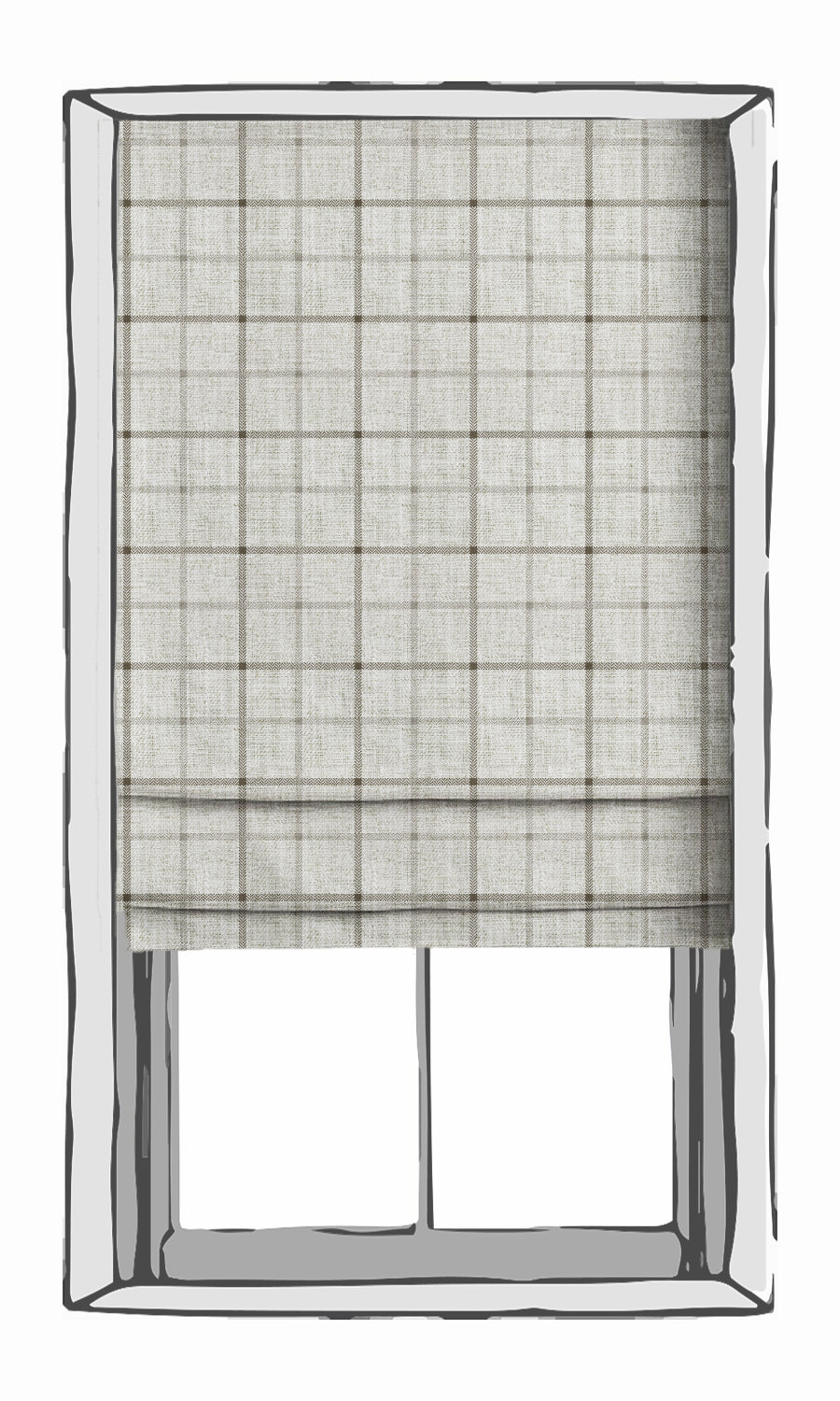 -Reconsider the front-slatted fold style: The visible slat lines of the front-slatted fold style form a subtle 'pattern' of horizontal lines on the frontage of a roman blind. When pitched against the horizontal lines of a checked fabric, the slat lines can vie for attention and create visual conflict. Therefore, we recommend careful consideration before picking the front slatted fold style for 'Castle Combe' fabric.