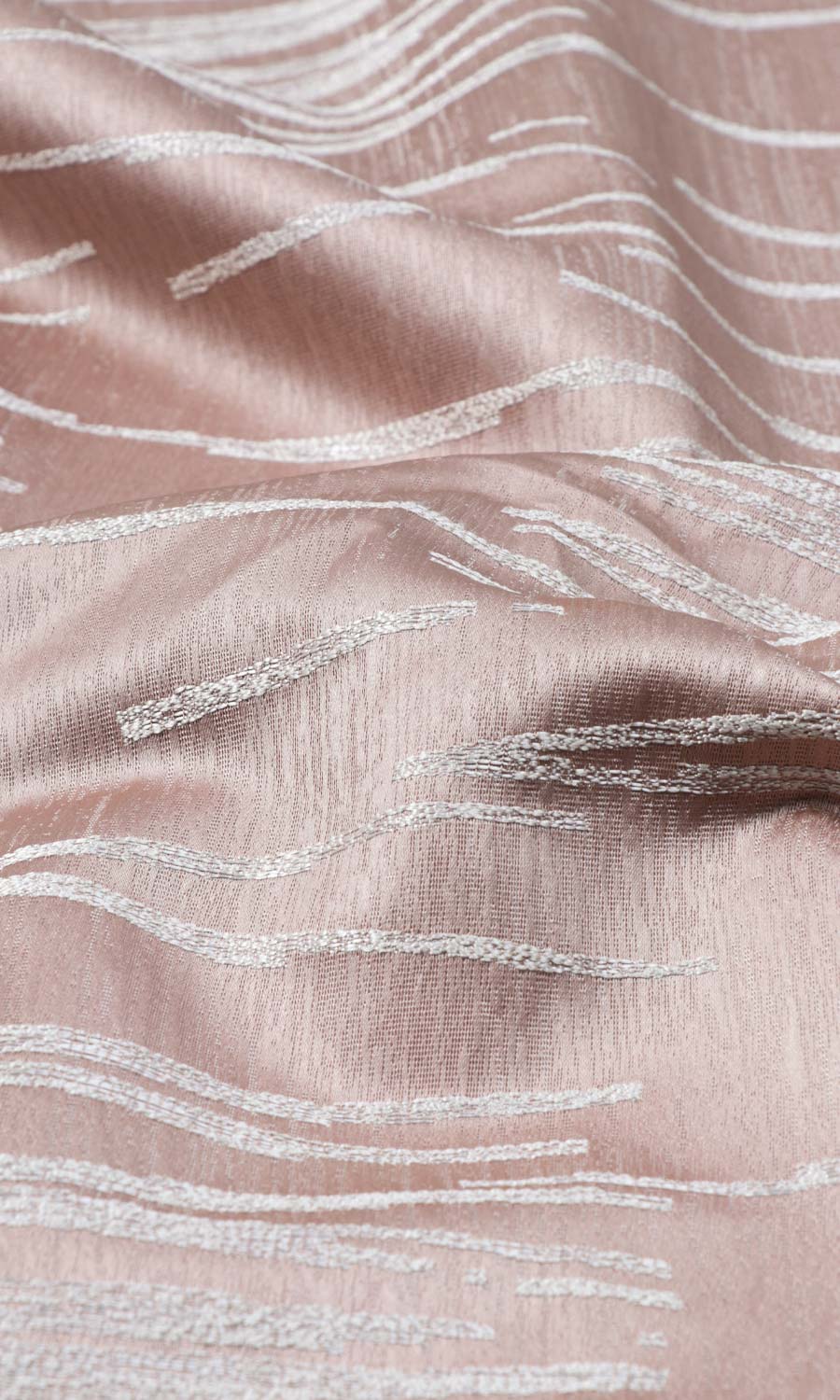 Like moonbeam skipping across still waters, 'Ceylon' captures movement in stillness. The blush-toned background grounds the glimmer, while the silver strokes dart across the surface in an abstract yet rhythmic pattern. Incorporate this piece into any space - from the dressy modern living room to the dreamy getaway bedroom - where the quiet drama of embedded pattern and soft warm hues will be elevating.
