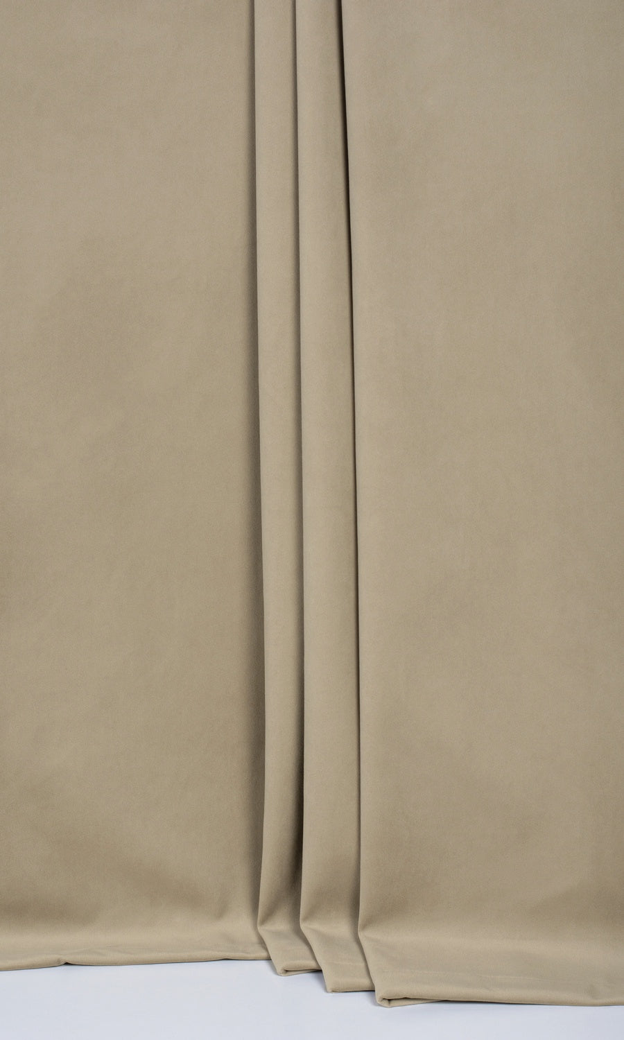 Soft as a hush, warm as dusk, this soft beige velvet captures the stripped-down beauty of sun-dried wood. With its buttery texture and caramel undertones, 'Chalk Cliffs' wraps formal living and dining rooms in a warm and inviting glow. Yet, its gentle presence - light, uncluttered and restive - makes it just as cherished in bedrooms and nurseries where sleep comes no sooner than calm.