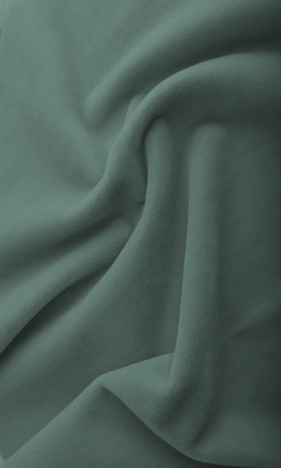 'Conifer' is where colour meets quiet. This stone blue fabric holds the elegance of weathered pebbles and windswept, tide-washed shores at dusk — that in-between shade that feels both cool and comforting. The plush velvet piles enhance the depth of the colour and make it all the more enticing. Pair with driftwood tones, weathered whites, or brushed brass accents and let this fabric enhance the dark aesthetic of a moody den, improve the sleep-friendliness of a bedroom, or the experience of the media room by blocking light effectively.