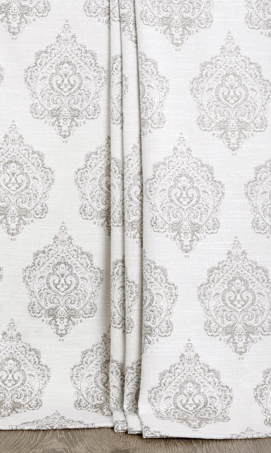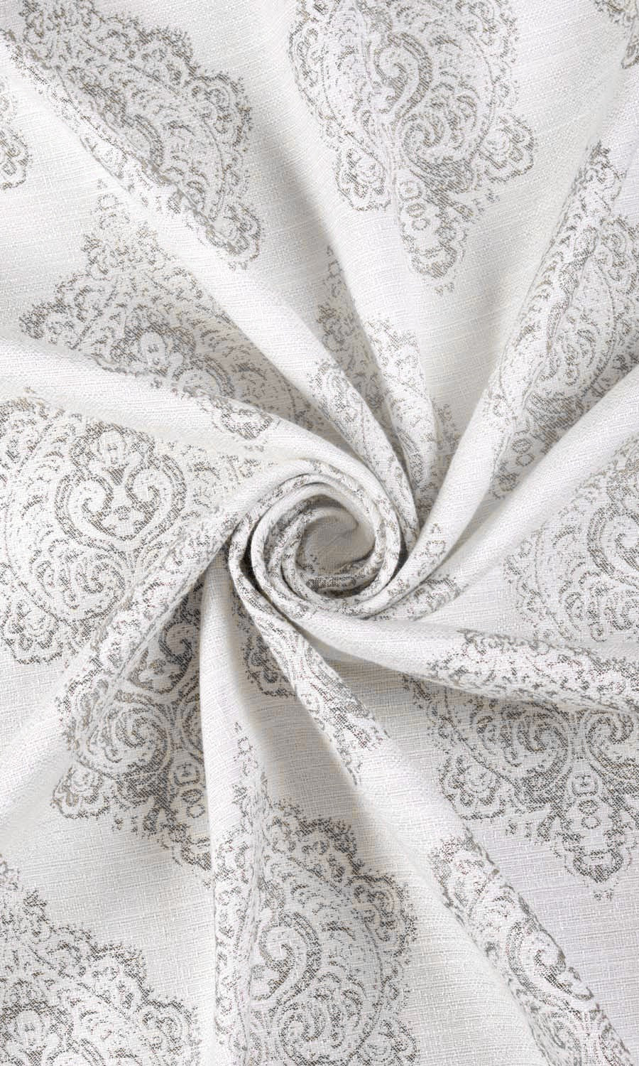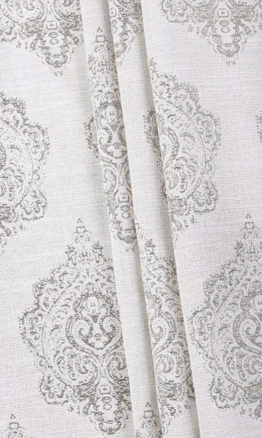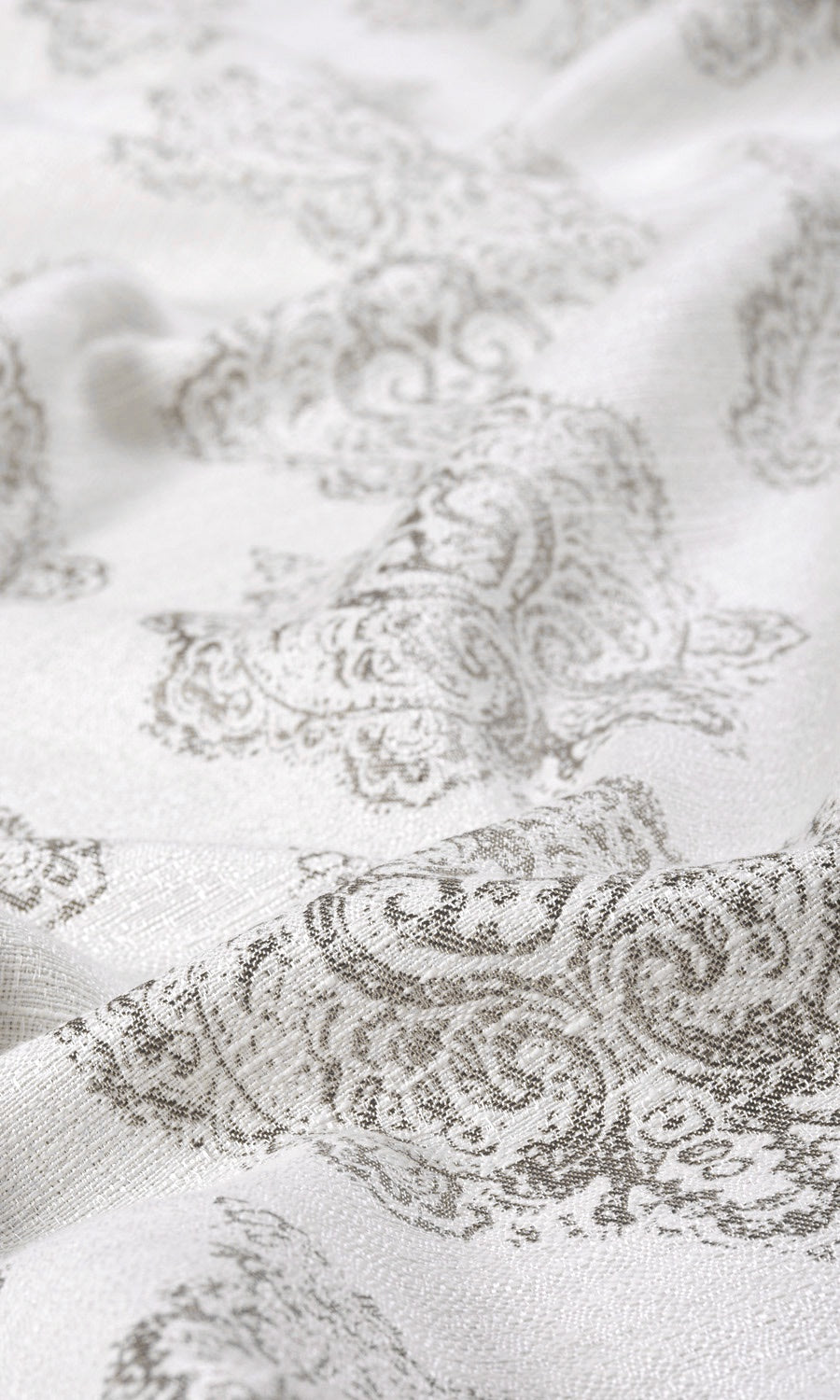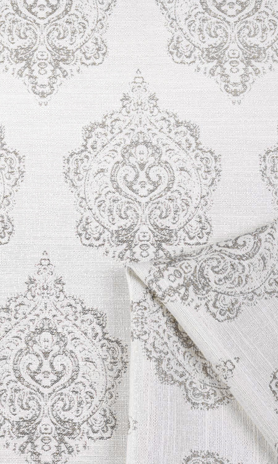 The epitome of grace - the classical grey-white damask - is all yours in the timelessly elegant 'Countryside'. Featuring elaborate details and curlicued shapes, this gorgeous window dressing is an effortless focal point any formal traditional, transitional or eclectic space will desire. Its ritzy allure left untouched, it sheds some of its glory with its slightly washed-out effect and scattered layout, making it more versatile to mix with several patterns and palettes.