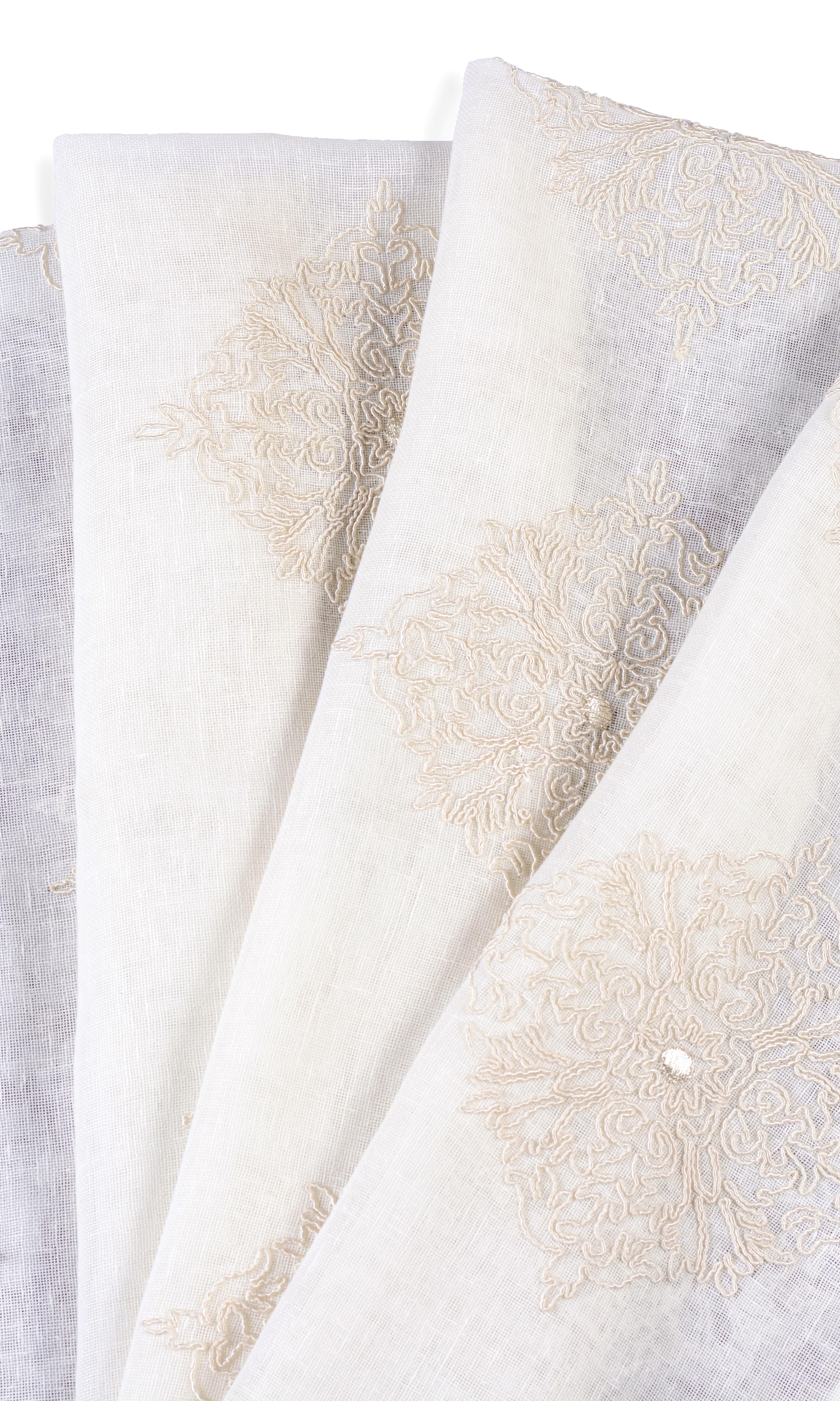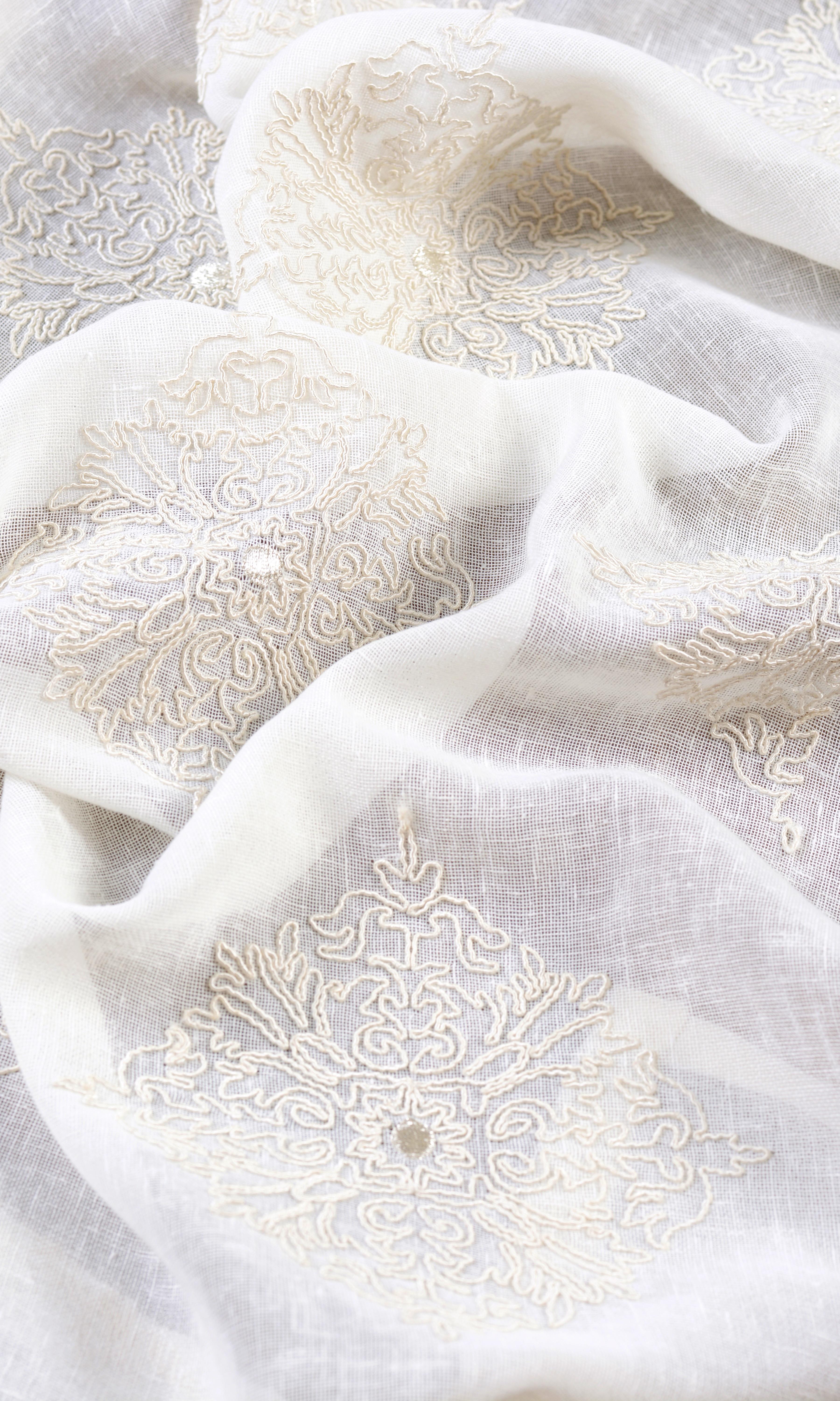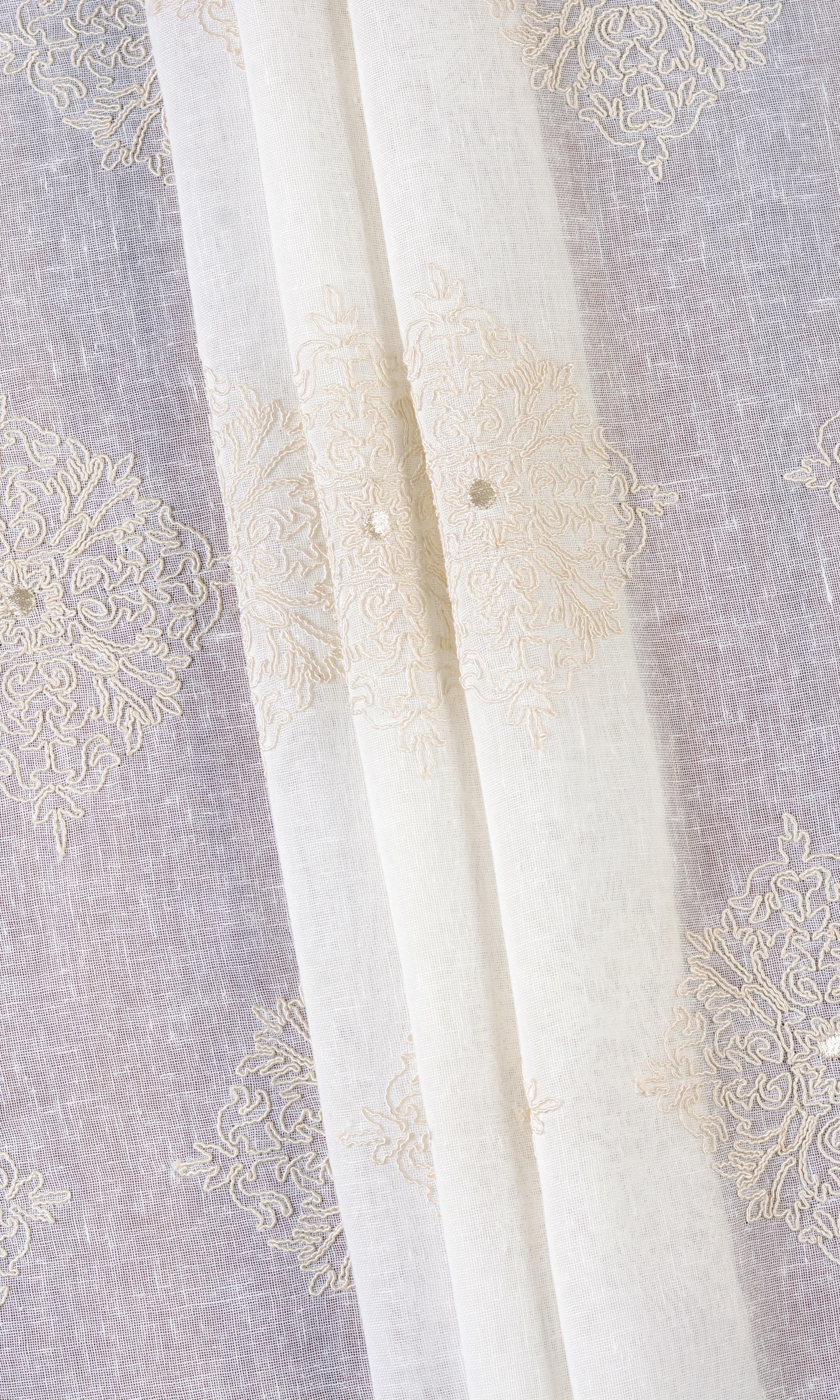 Quiet like a whisper, soft as a feather, 'Creamy Seed' is poetry written in thread! This white sheer adorned with cream floral embroidery is an ethereal beauty that may be best described as a floral shower frozen mid-air! Its serene colours and light-filtering base make it the perfect piece to pair with blackout drapes in a serene bedroom or as standalone treatment in a minimalist living room where daytime privacy is key.