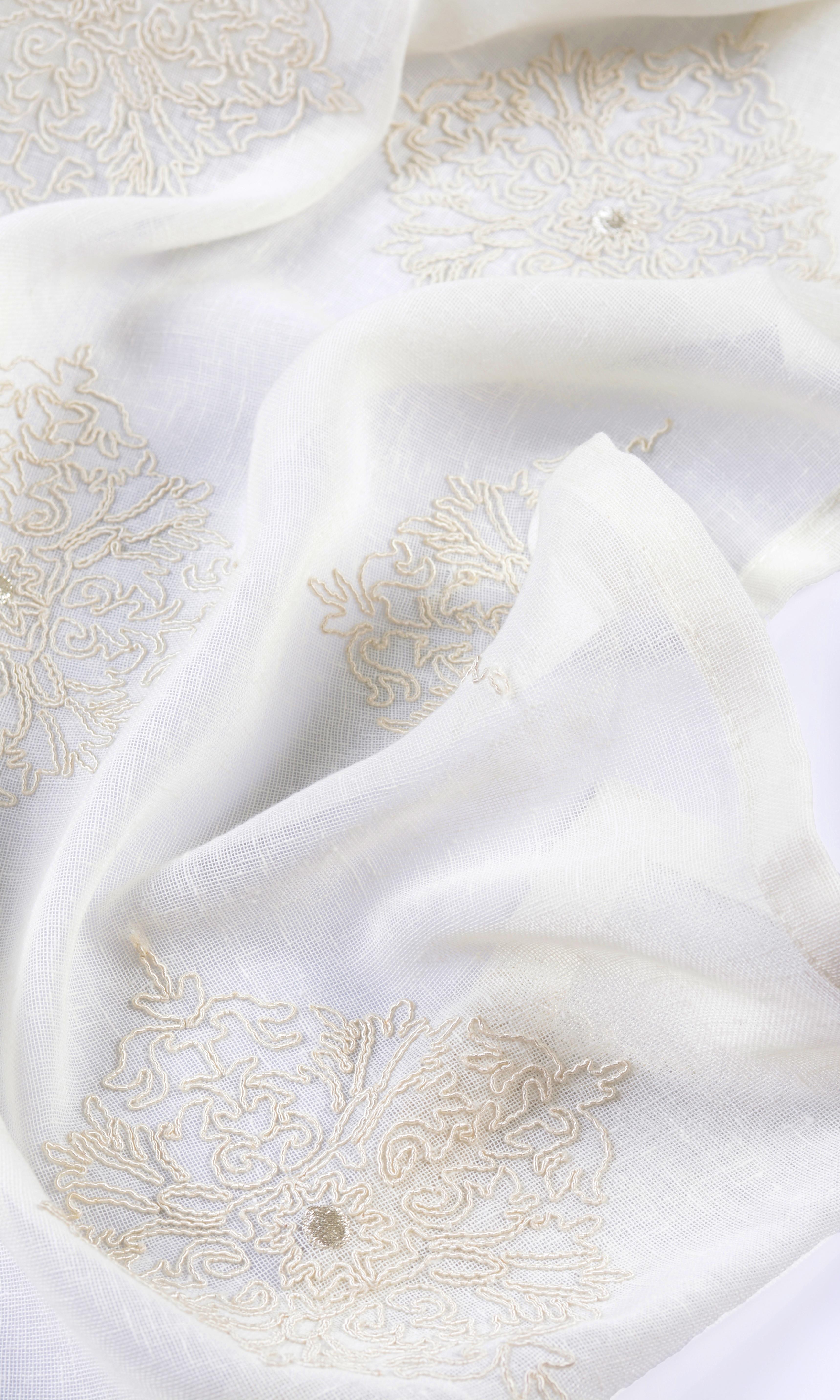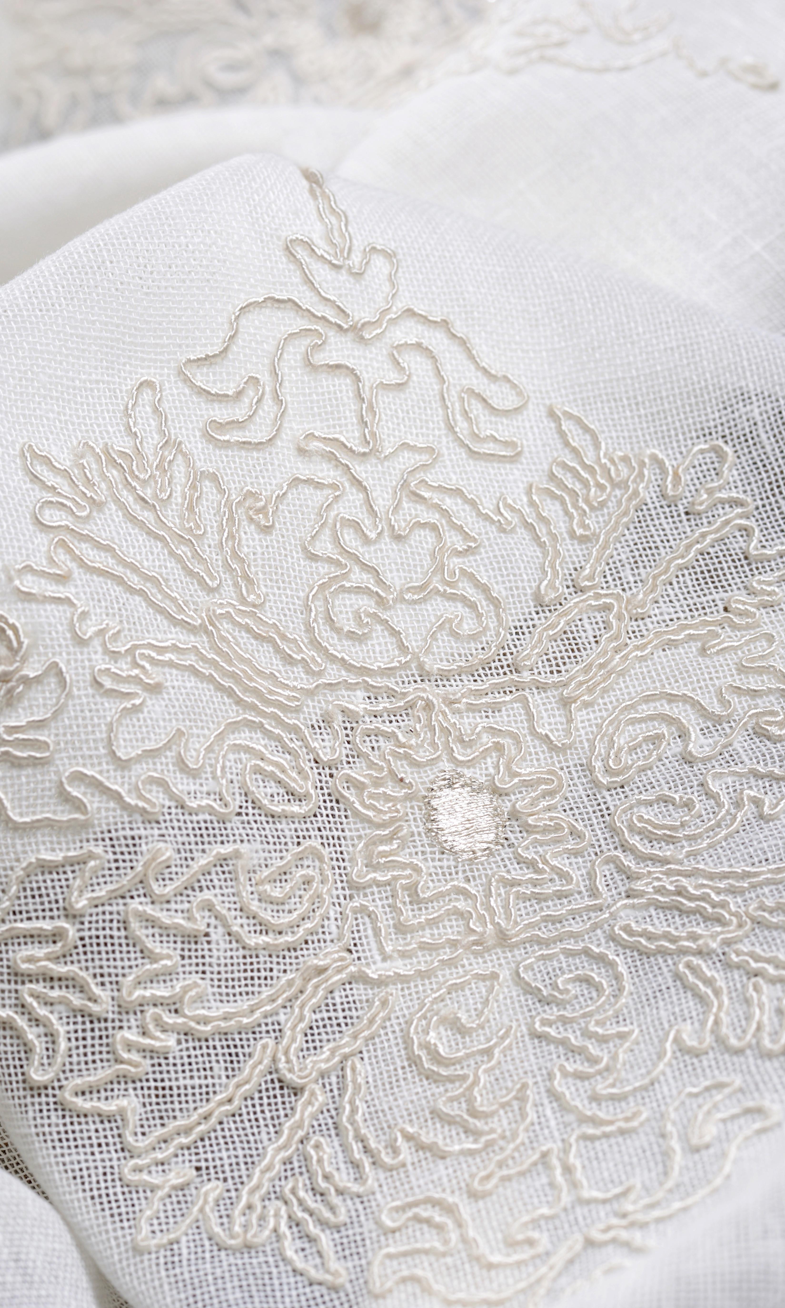 - The interplay of texture and light in its nimbly embroidered floral motifs