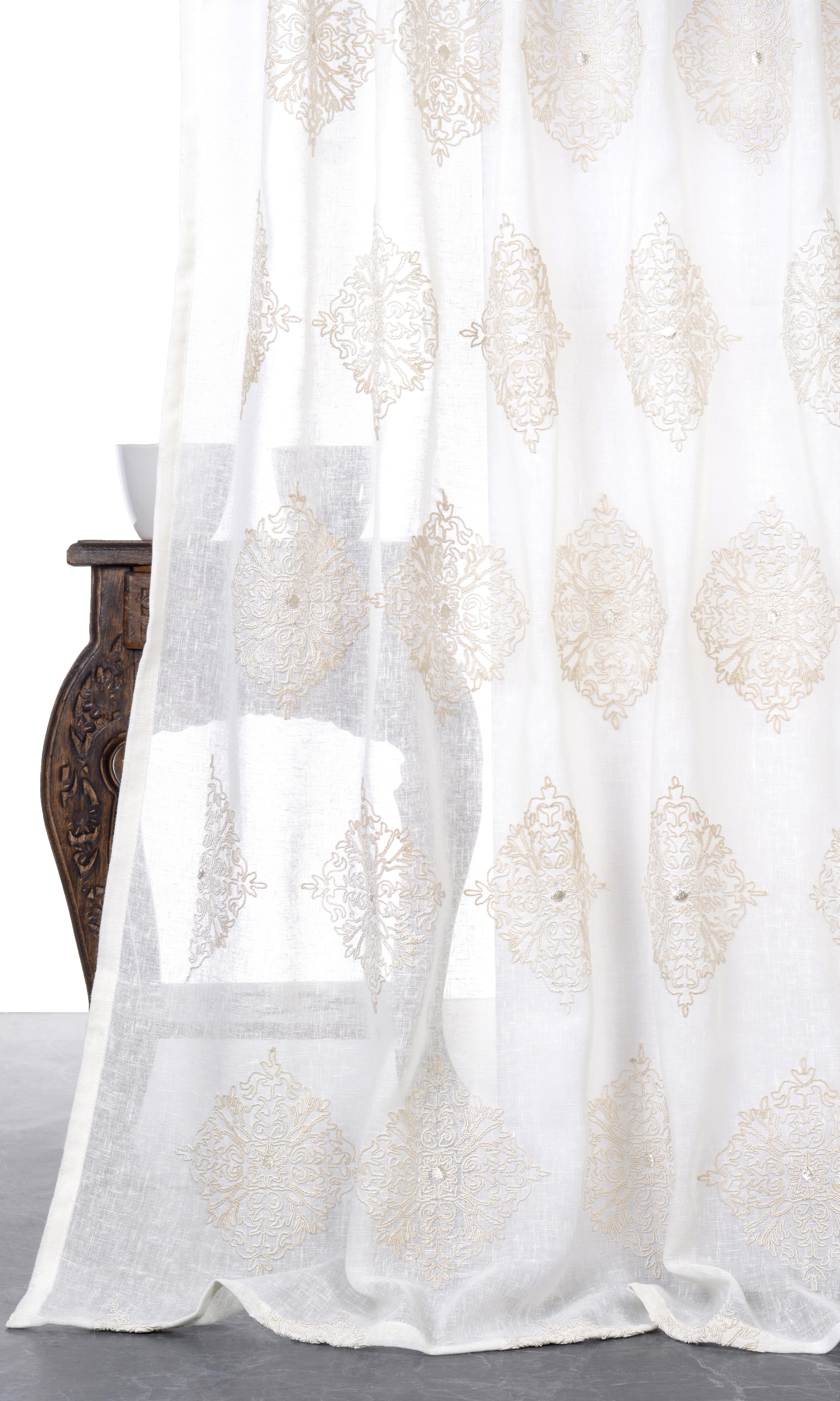 - Its sheer weave that, like a misty veil, guards privacy while letting sunlight drift through