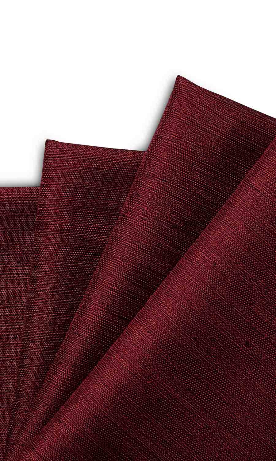 'Crimson Eclipse' makes its case as the standout piece in your decor with its striking burgundy hue and rugged texture. Its silken sheen offers a luxe overtone that makes it just right for formal spaces, especially suitable for homes that love the resplendence of silk minus its tedious upkeep. Add to a bold maximalist setting dripping with jewel tones and vibrant patterns to nod to its rich ruby accents.