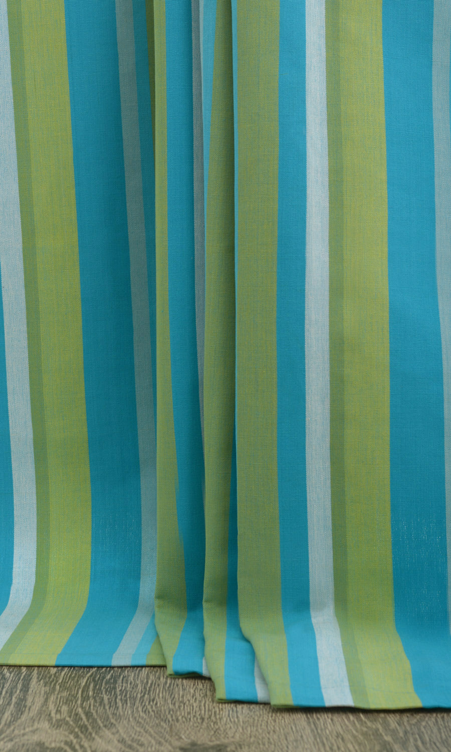 Meet your quest to ground your decor in natural materials, colours and simplistic pattern play with this green-blue striped pure cotton fabric. 'Crown Peacock' intermingles shades of green and blue in a clean striped pattern, redefining chic elegance. Plus, its cotton composition makes it a thoughtful pick for homes with kids, pets, and allergy prone members.