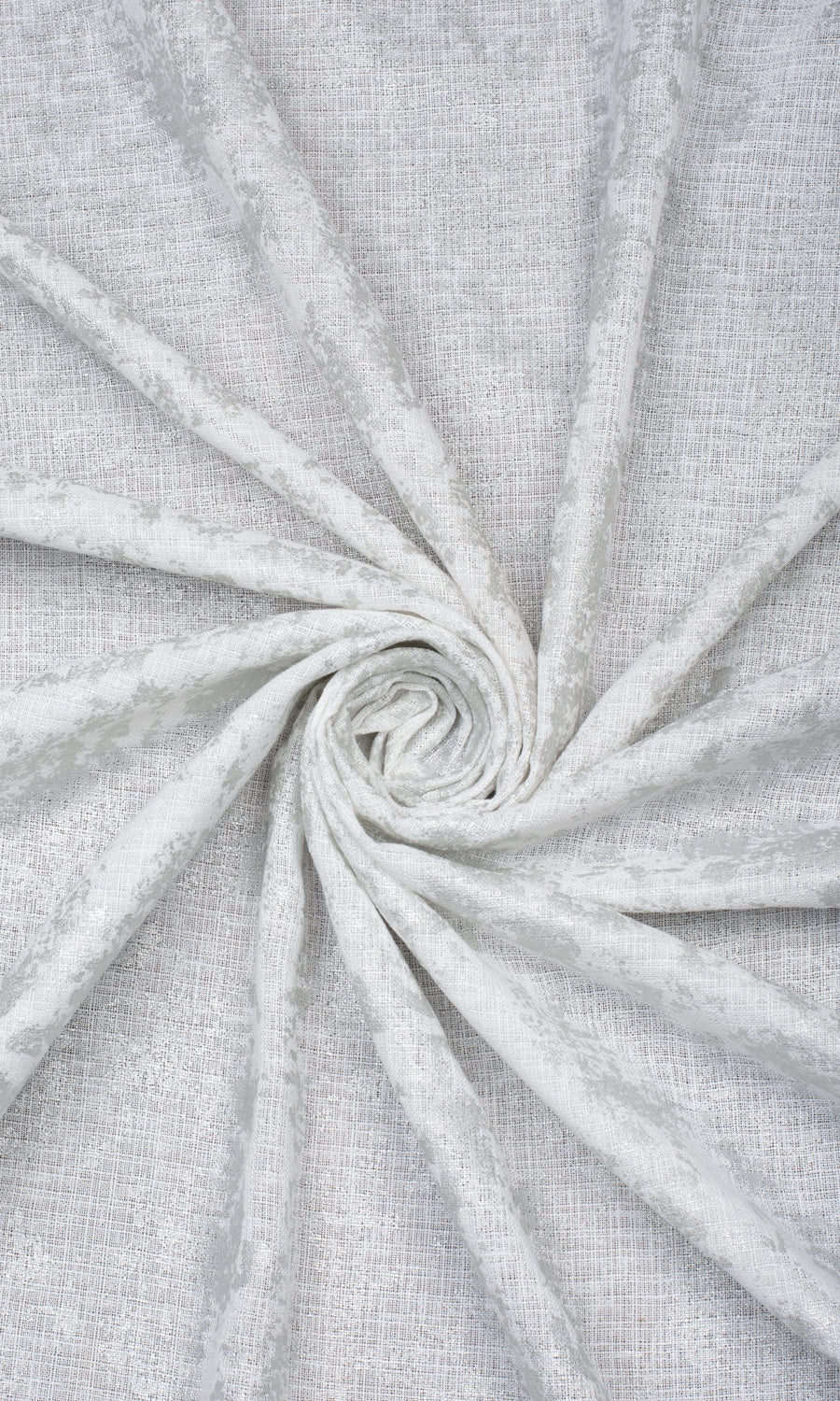A white fabric that scatters the glimmer of the moon with its silver abstract print, 'Crystal Ice' marries the timeless aesthetic of white with the new age glam of chrome. It is a relatively lightweight fabric that does not block light too strictly, making it a great choice for rooms that are not heavily exposed to sunlight. Add to a modern setting to nod to its nickel accents or to a kids' room where its shimmers can offer the magic of pixie dust.
