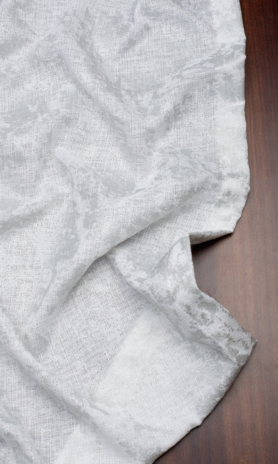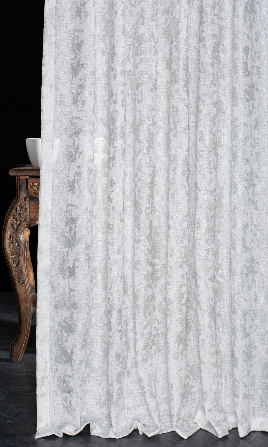 A white fabric that scatters the glimmer of the moon with its silver abstract print, 'Crystal Ice' marries the timeless aesthetic of white with the new age glam of chrome. It is a relatively lightweight fabric that does not block light too strictly, making it a great choice for rooms that are not heavily exposed to sunlight. Add to a modern setting to nod to its nickel accents or to a kids' room where its shimmers can offer the magic of pixie dust.
