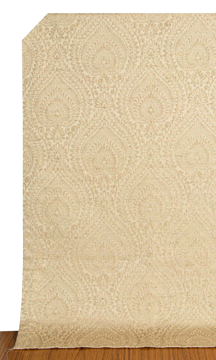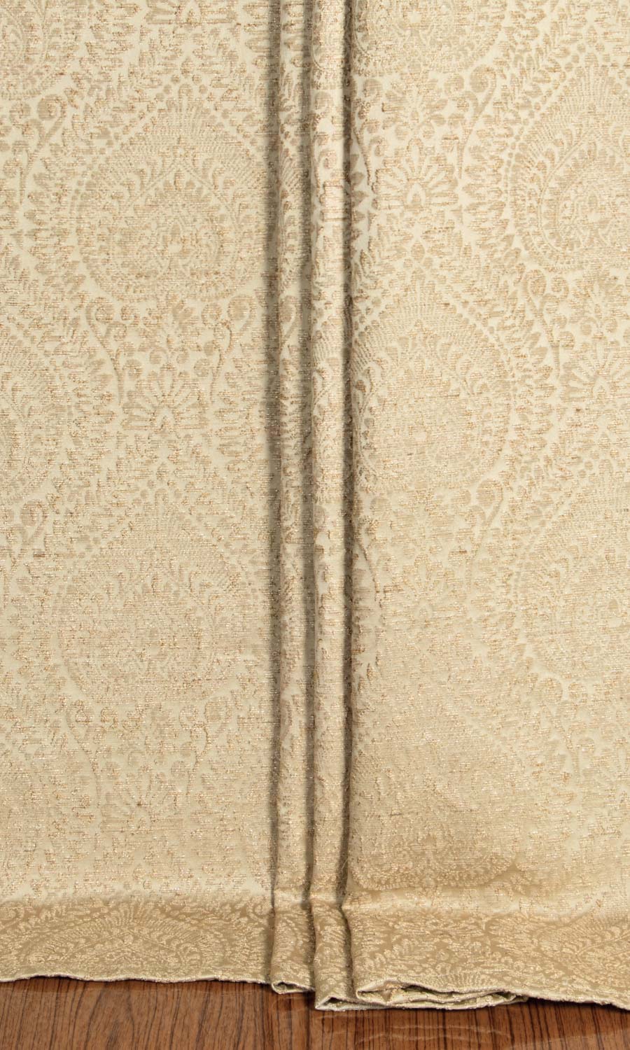 Like a weathered mural on a Tuscan wall, 'Cumhur' breathes timeless charm with its soft, embossed damask pattern. The intricate pattern unfurls in the subtle beauty of warm cream hues like the first light of dawn touching wet sand. Crafted to endure with unfailing charm, this fabric is excellent at draping and is resistant to colour damage and wrinkling - a fantastic blend of beauty and function - for homes that blend traditional allure with contemporary ease.