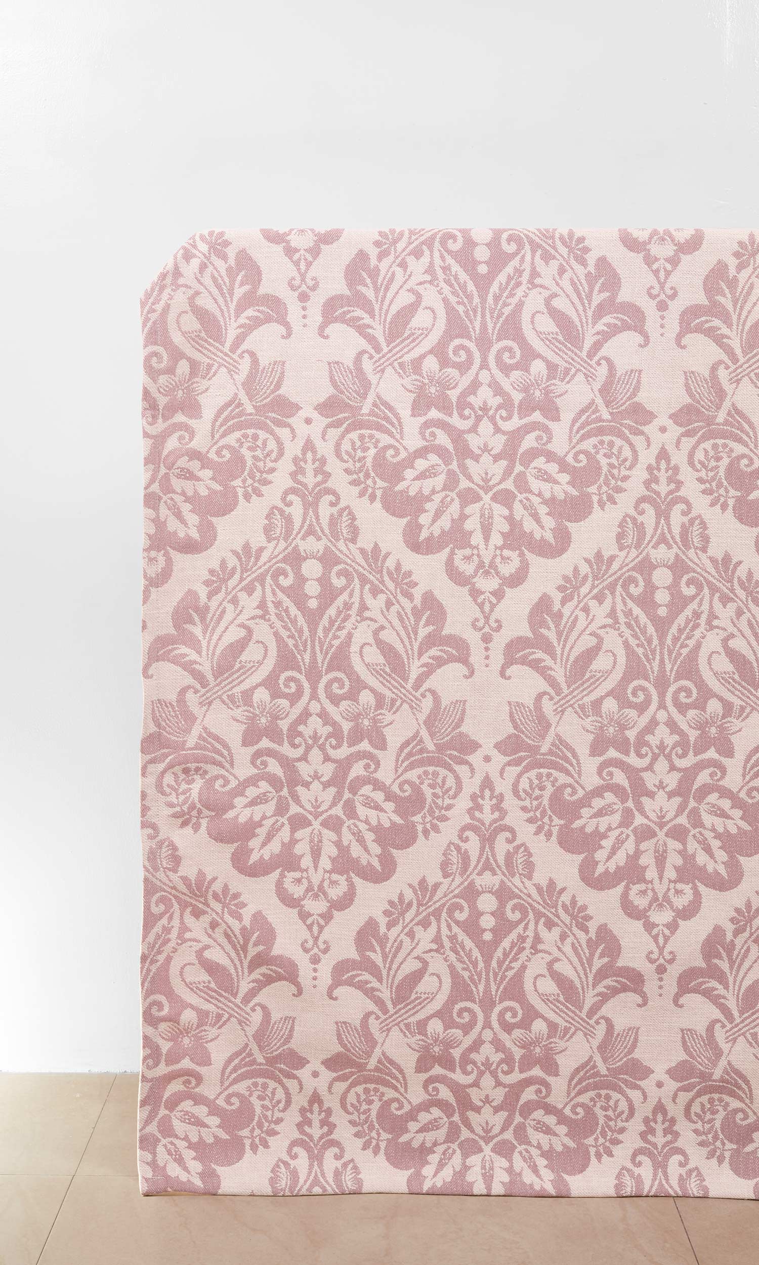 'Damask Dream' from our Classic collection is a bold treat of oversized damasks. Etched out in a tender pastel pink palette, this two-tone fabric calls attention with its majestic twirls and nature-inspired themes, along with its rosy blush hue. Create a focal point in a space featuring classical themes with 'Damask Dream's elaborate designs and soothing tone.