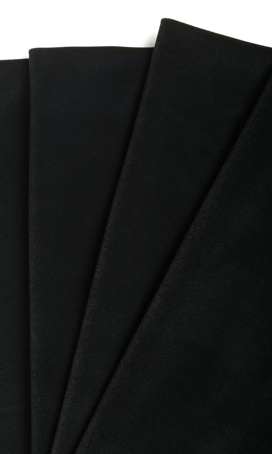 'Dark Pebble' feels like midnight woven into fabric with its obsidian hue. The lush naps of its rich velvet accentuate the depth of the inky black hue, adding drama and glamorama. Its dense weave, combined with the moody palette, makes it an impeccable choice for bedrooms and immersive media rooms where comfort, luxury and elegance seamlessly intertwine.