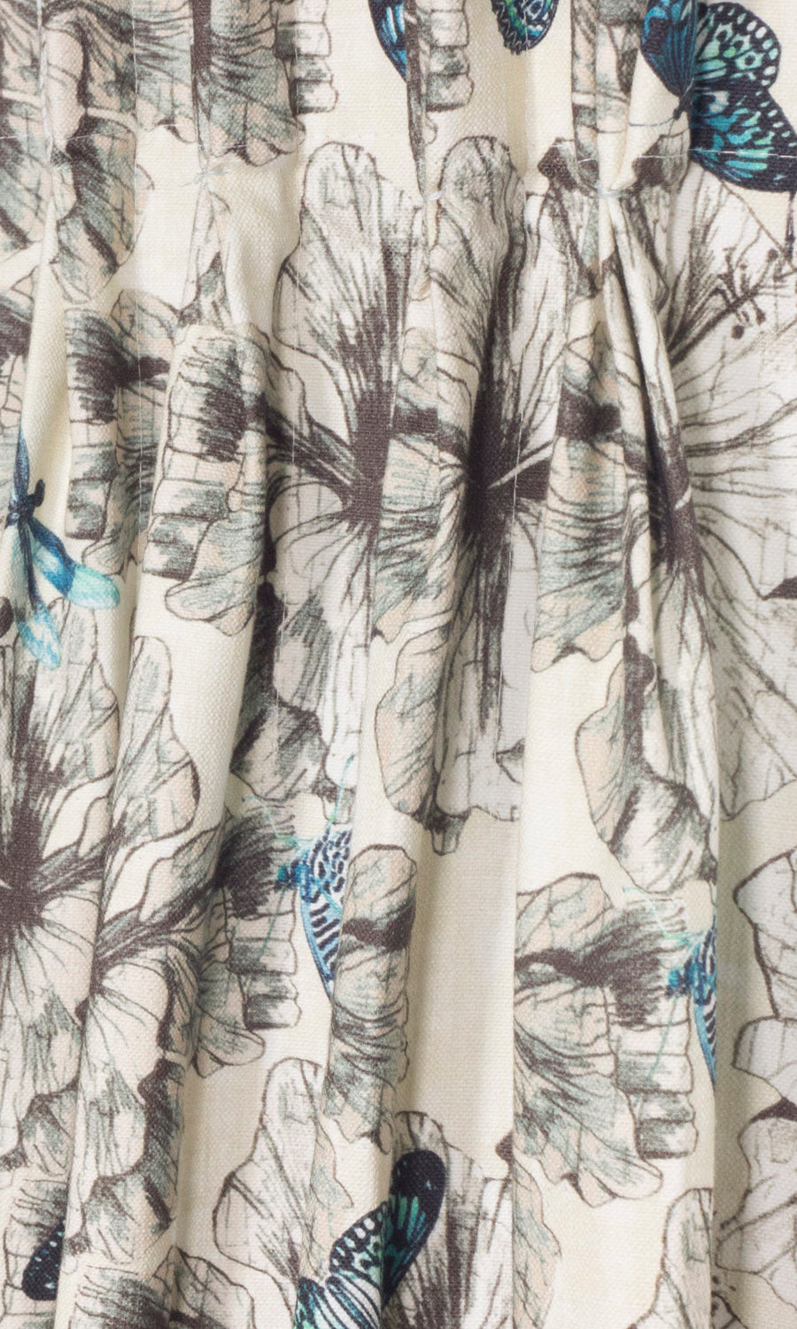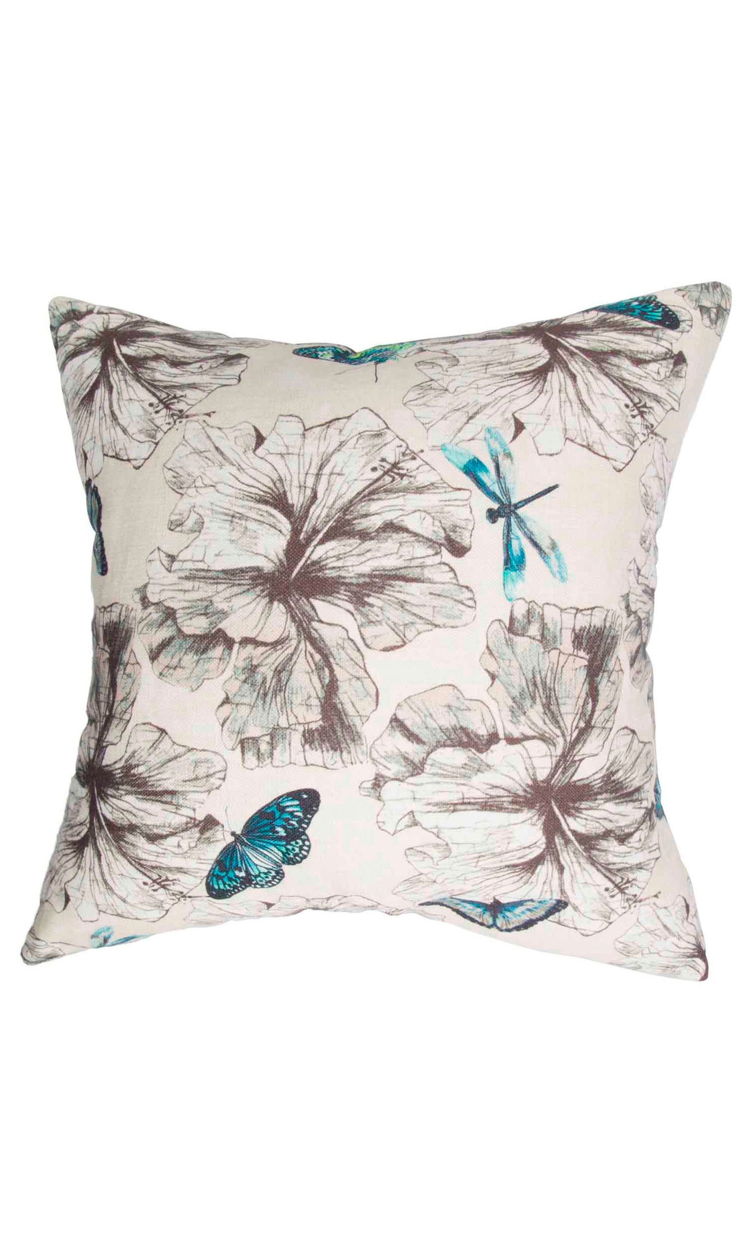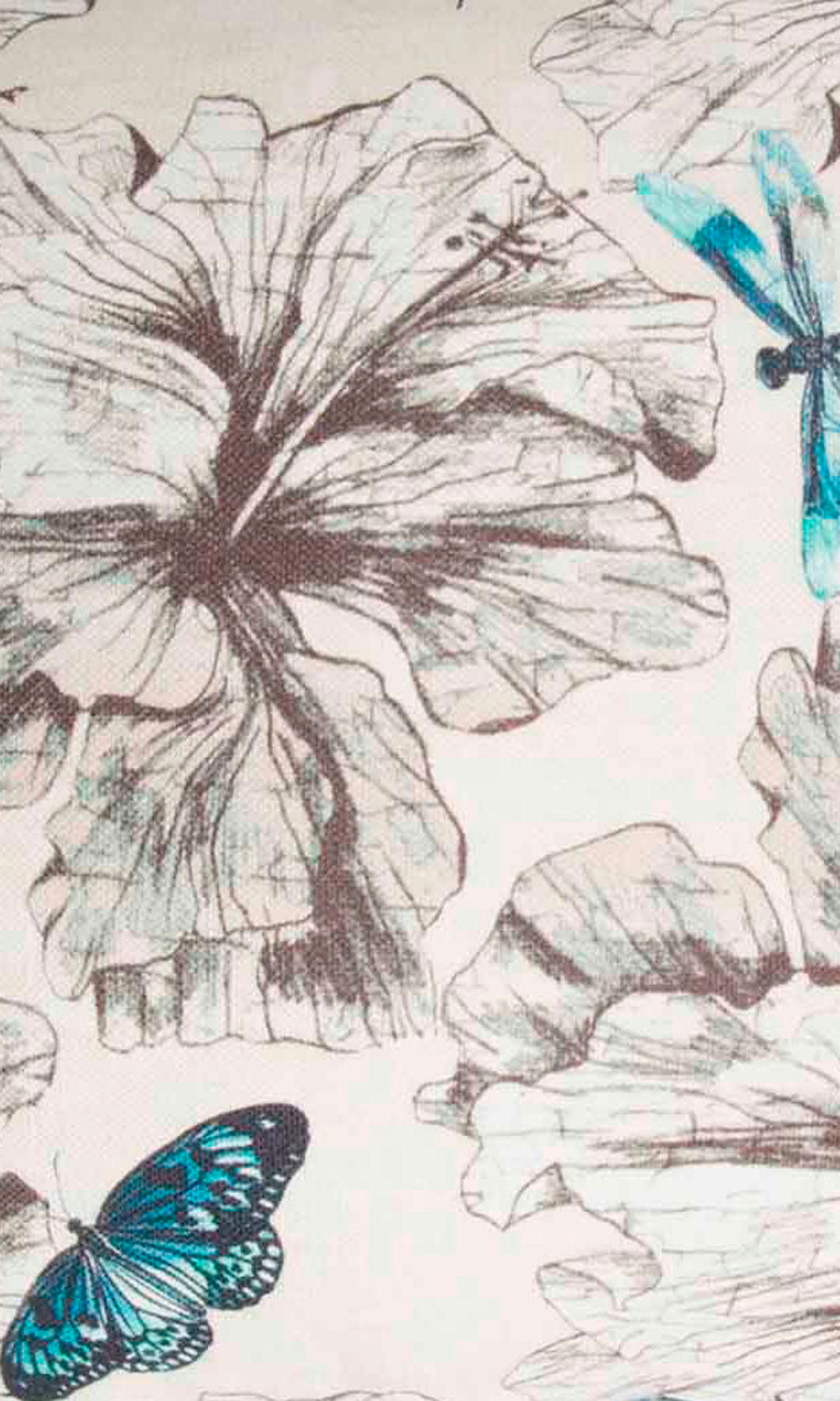 Depicting an idyllic theme of shoeflowers flanked by butterflies and dragonflies on a pure cotton base, 'Darner' makes a perfect finishing touch for a home with an outdoorsy theme, kids' rooms and pattern-friendly decor styles. Pair with a solid blue to emphasise the theme wrought in blue details.