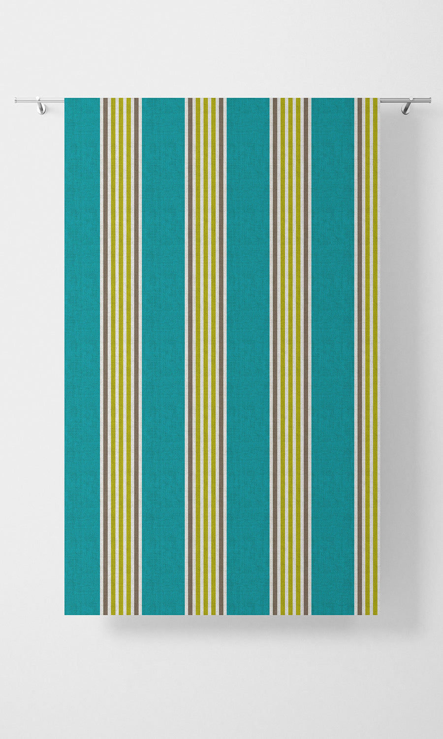 If a breath of fresh air could be woven into fabric, 'Delphi' would be it. Its tiffany blue and zesty apple green stripes channel the breezy elegance of tropical escapes and poolside cabanas, offering a look that's both invigorating and serene. Pair with sandy beige for a beachy feel, metallic accents for an Art Deco aesthetic or pops of citrusy yellow to create a lively contrast.