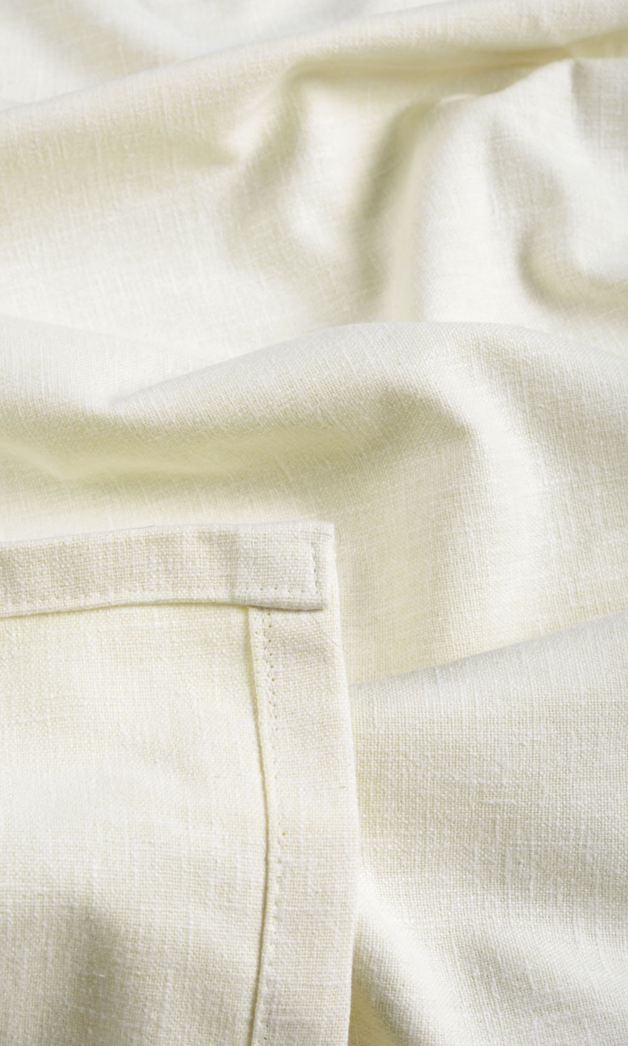 Untouched by colour, unfazed by clamour, 'Divinity Cream' makes its mark with a truthful, serene silence. It can complement the minimalistic aesthetic of modern homes as well as the dainty themes of Scandi and country decor. You can trust this cotton blend to bestow the summery beauty of cotton sans any wrinkles to meet the mandate of a polished aesthetic.