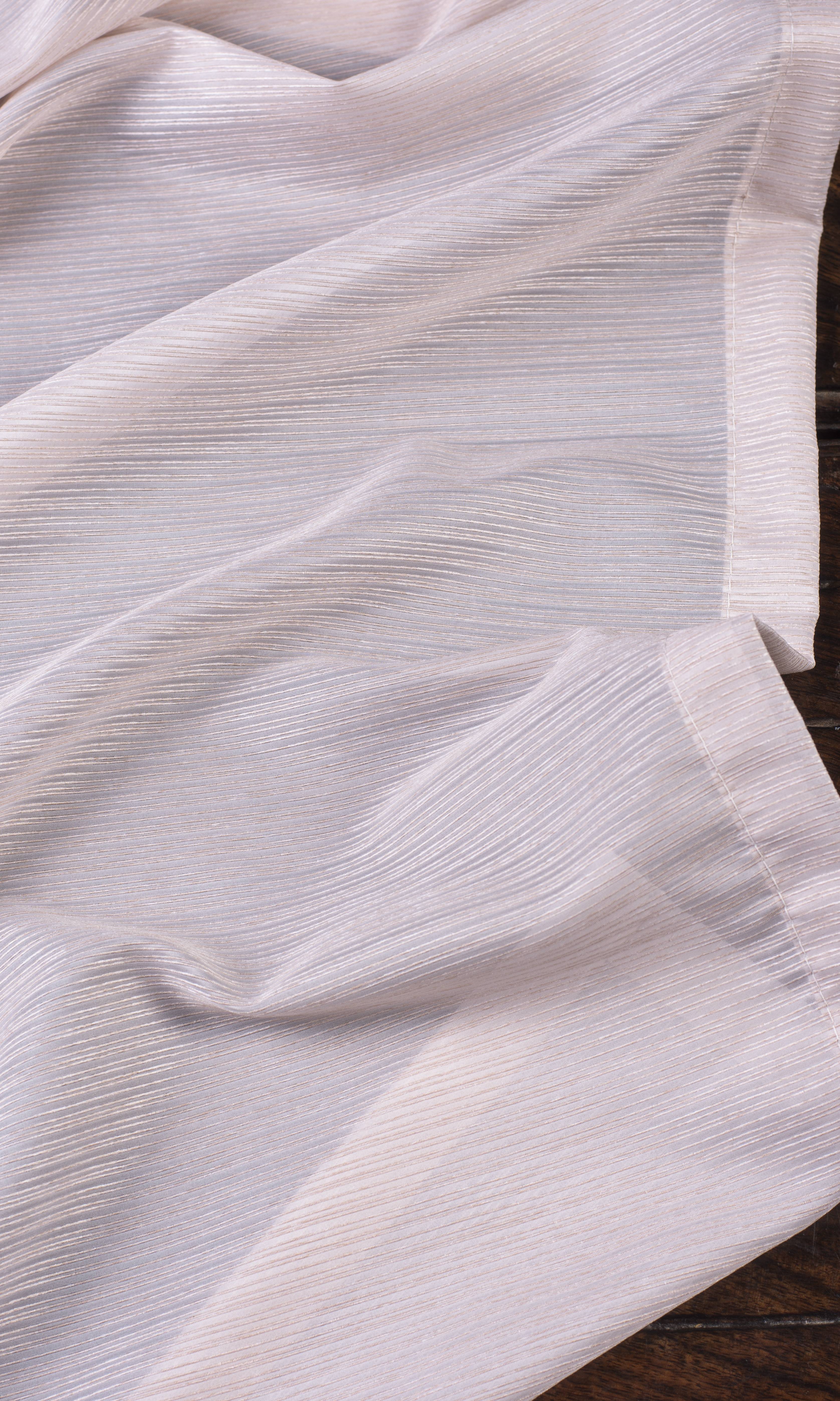 With a gentle blush tone and striped sheer weave, 'Dreamy Candy' is here to transform your space into a poetry of light and shadow. Its textured pattern of stripes embedded into the weave offers an elegant blend of lustre and tone-on-tone contrast. This pink sheer fabric guarantees privacy during the day for homes that also want to welcome in light and air.