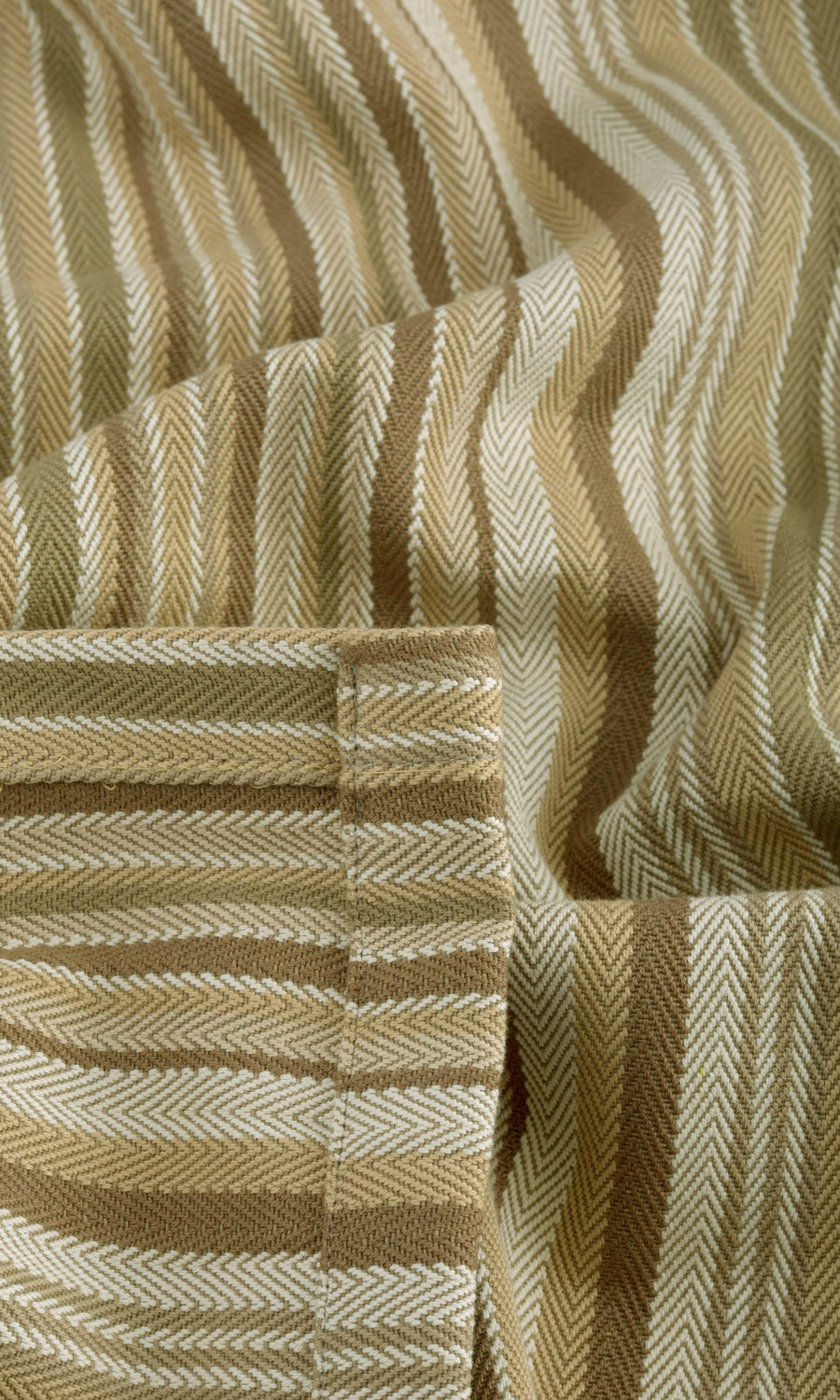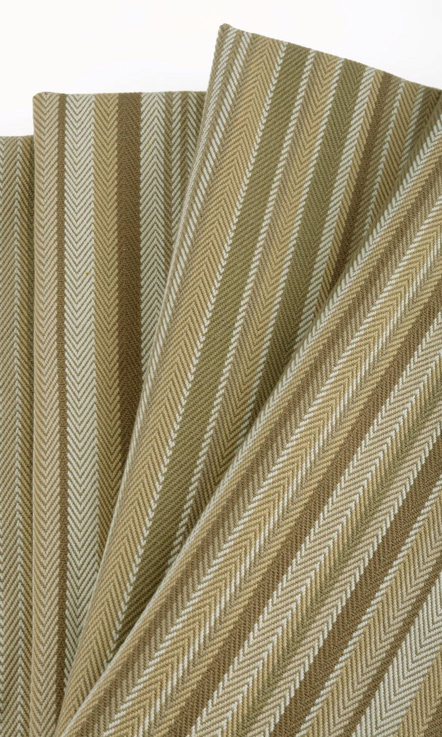 'Dubris' is a striped fabric that offers the buzz of pattern play, while maintaining a palette of demure hues. Its herringbone striped weave adds a textural warmth that elevates the quiet earthy colours to a wholesome organic feel. And, its pure cotton composition ensures that this natural elegance is out-and-out authentically organic.
