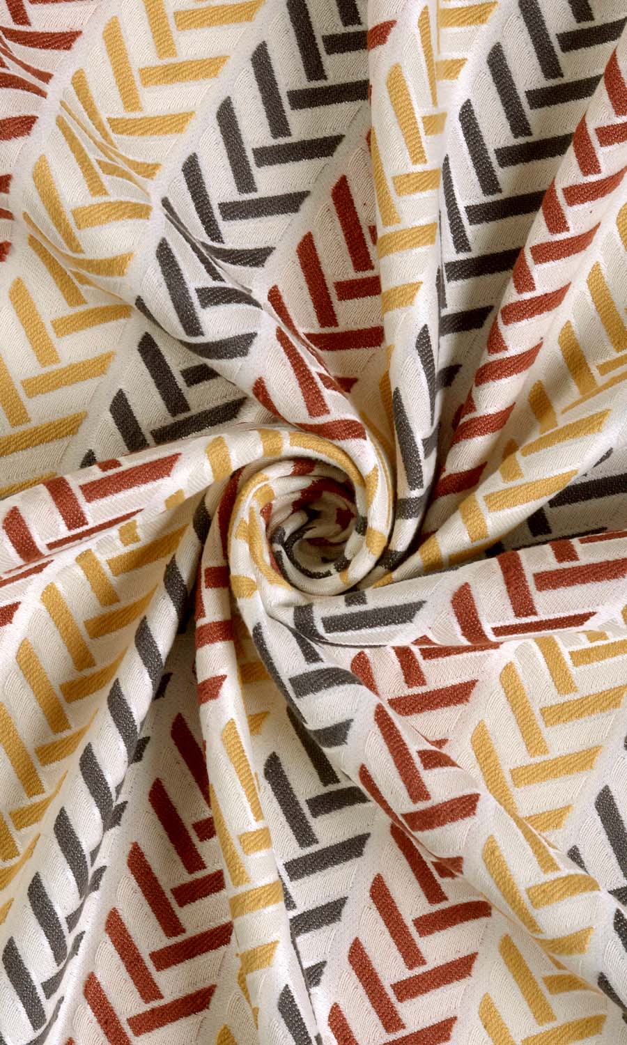 With the sleek symmetry of an ageless geometric motif, this elegant piece from our Basilius collection is all set to beautify your home on a modern note. A detailed, horizontal pattern enveloped in a contemporary palette of white, red, yellow, and charcoal makes for a quiet yet eye-catching allure.