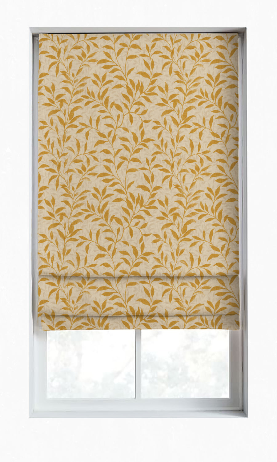 'Evasive Sun' is a serene play of meandering yellow leaves delicately spread across an ivory canvas - subtle yet full of character - evoking a sense of quiet, graceful elegance. Its understated palette with just a hint of cheer brings a soft, natural warmth, making it a calming choice for bedrooms. And the dimout properties of the fabric will ensure that you can enjoy a long undisturbed sleep in a cocoon-like cosy dark space.