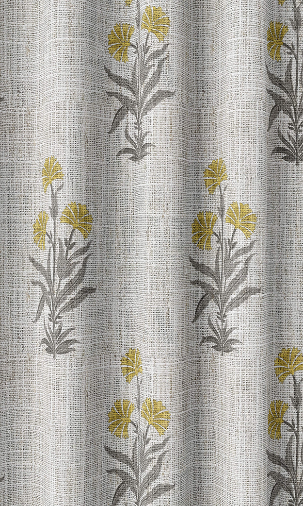 Trading the vibrant red and white palette for an understated grey and yellow combination, 'Faithful' recaptures the iconic Indian poppy motif with updated aesthetic sensibilities for a modern home. Its uncluttered layout and largely neutral palette make this floral fabric a great choice for modern homes that prefer minimal details and embellishments. Add it to a yellow-themed room where the grey can offset the energy of this high-spirited colour and echo its accent tones.