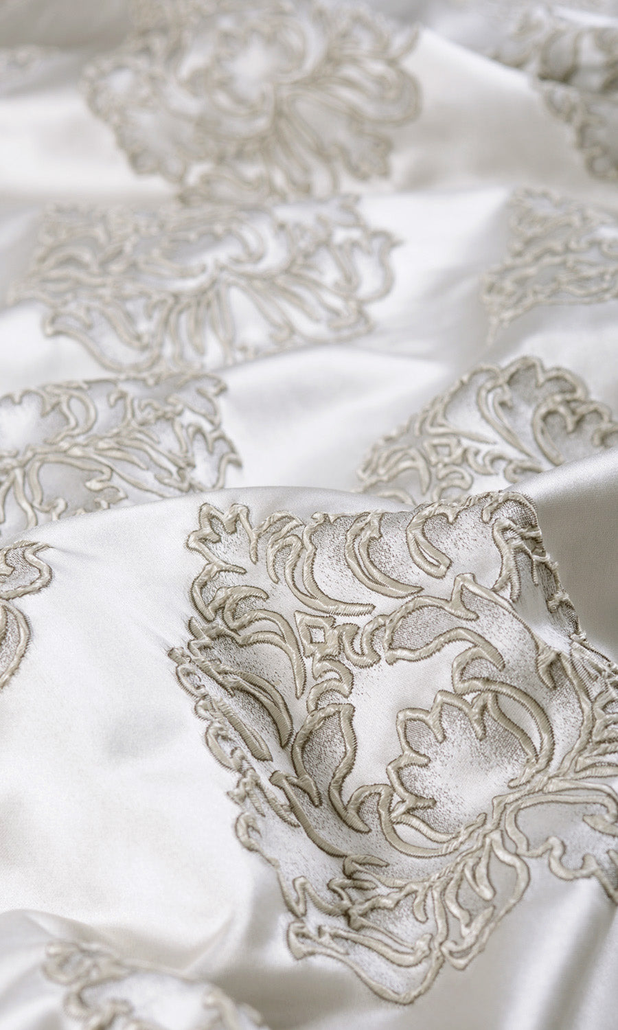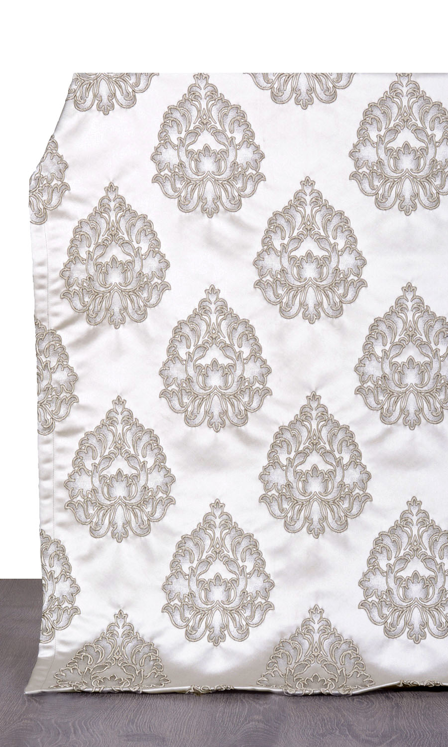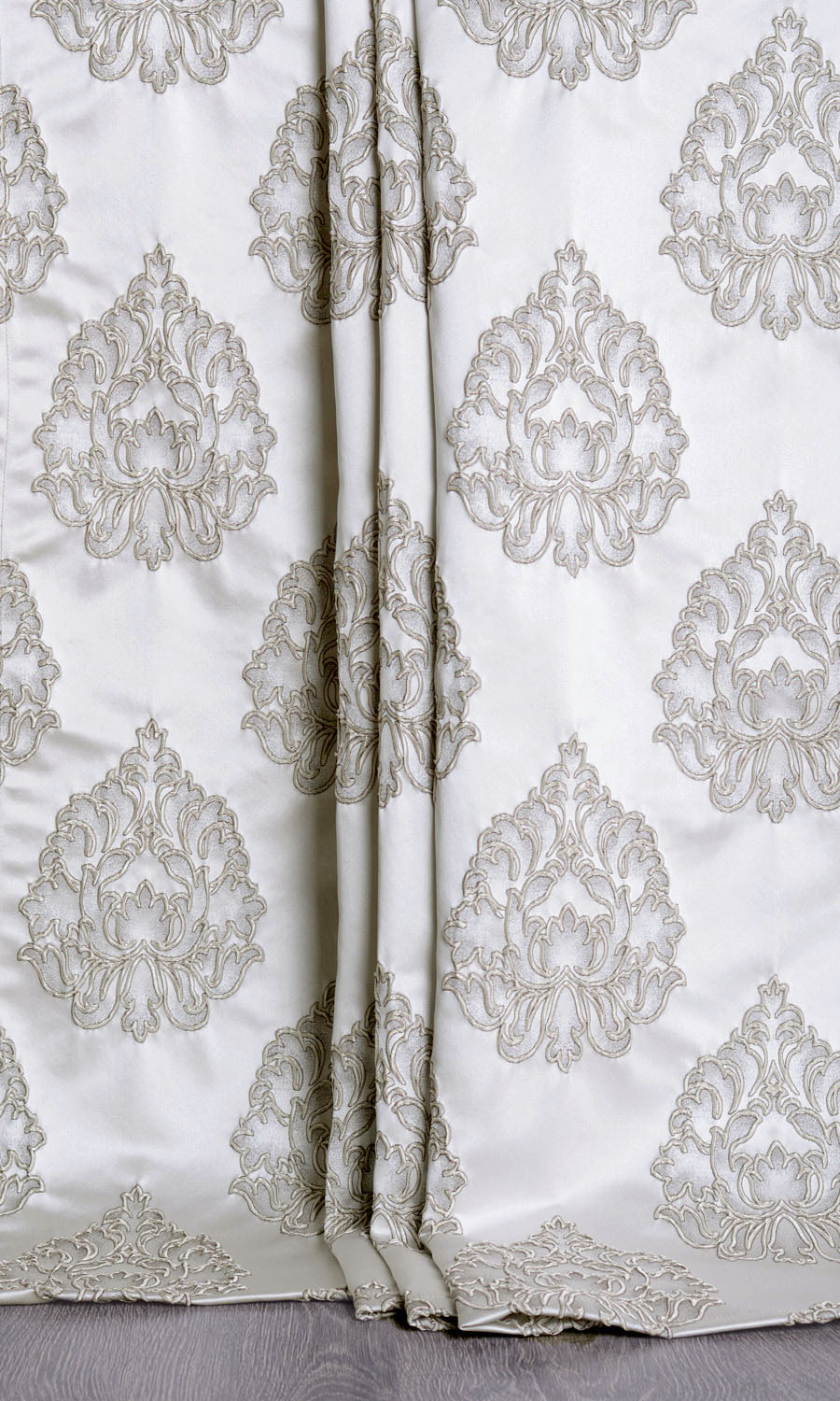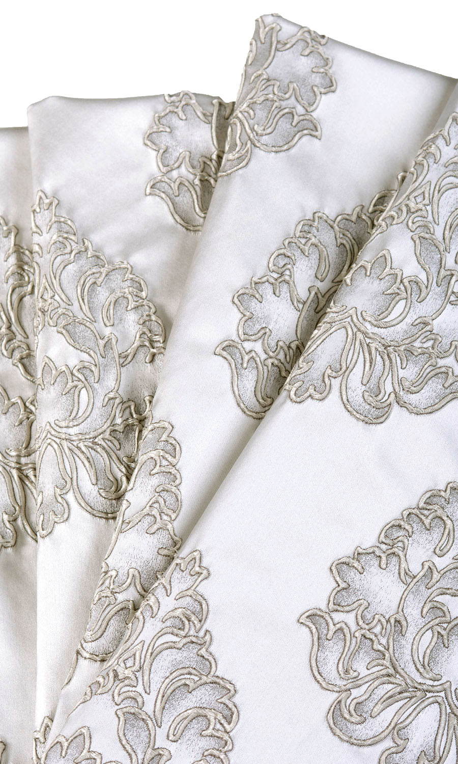 'Foamy Ashen' is the right bit of glint and oomph that a plush living room or formal dining room can capitalise on. Its silhouette rendition of the classical damask offers a clean-lined look for what is typically a rather ornate motif, making 'Foamy Ashen' ideal for both traditional and transitional design styles. Shunning the traditional golden details, this modish damask embraces silver accents to offer pizzazz in true modern style.