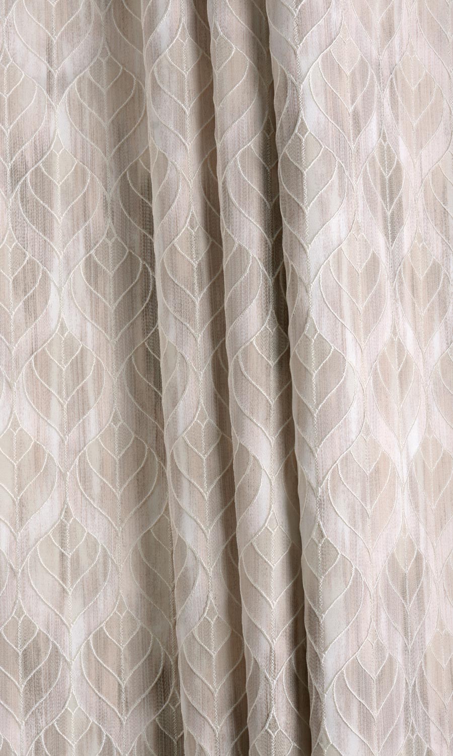 'Fountain Ink' channels understated elegance through its pale grey ogee-style leaf print, subtly elevated by delicately raised contours. Each leaf shimmers ever so gently, adding a serene rhythm to a sunlit living room and a quiet glamour to a neutral-toned bedroom. It brings a fresh note to the decor with a soft gleam, making it ideal for formal and semi-formal spaces across various decor styles.