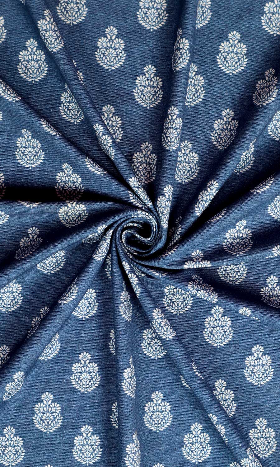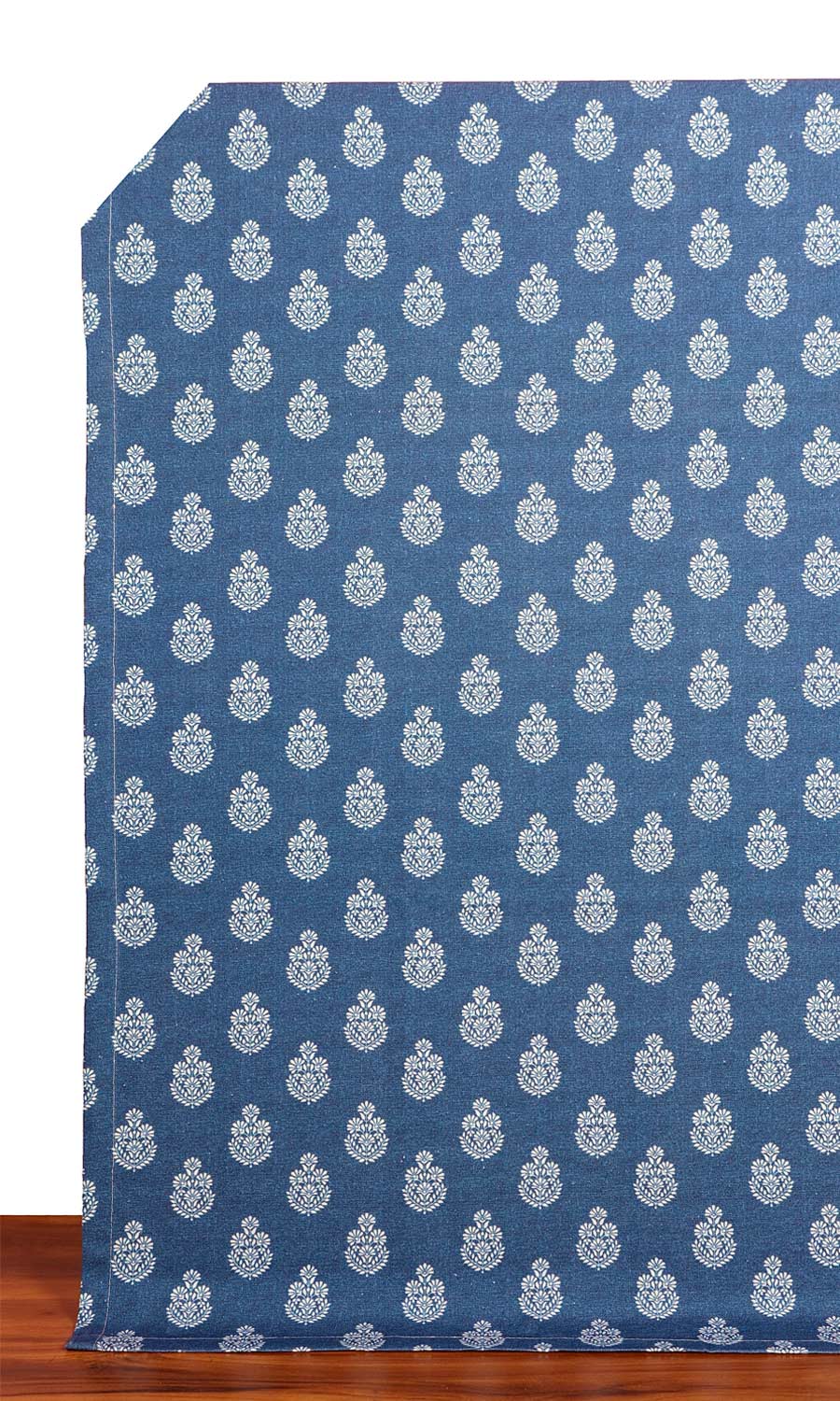 Carrying the simple elegance of the Indian 'booti' motif from the sun-drenched deserts of Rajasthan to the comfort of your home, 'French Haze' makes a beautiful eclectic piece with an oriental flair. Its beautiful block-printed florals - stylised pine cones with damask-like details - offer a refined yet relaxed look, rich in handcrafted elegance. Woven from pure cotton, the fabric is breathable, skin-friendly, and effortlessly welcoming.