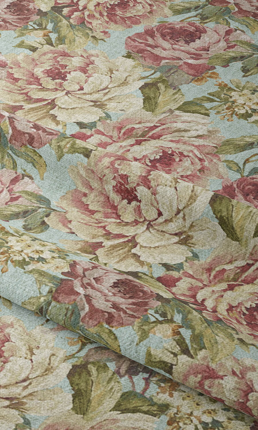 Featuring lush rose posies in idyllic blush tones from end to end, 'Fresh Pavilion' is an assertive statement of vintage flair that takes you back in time with a sense of pride. This piece oozes nostalgia and whimsy, transporting you to the breathtaking flower beds that framed erstwhile tudor homes and gabled cottages. Pair this floral beauty with antique furniture, Persian rugs and embroidered pieces to anchor the space in timeless themes and casual charm.